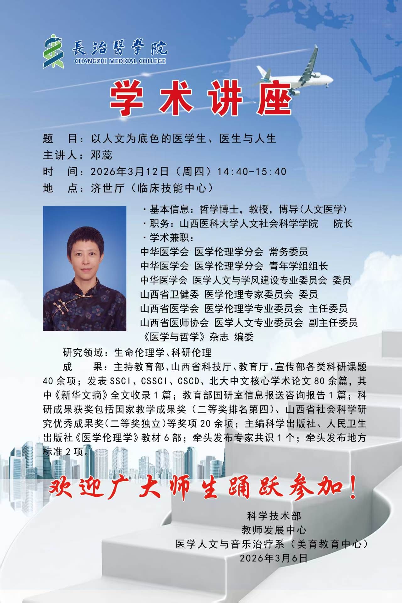 3月30日下午,我校在济世厅召开2026届毕业生就业创业工作推进会,深入分析了当前就业形势,部署了下一阶段重点工作。校党委副书记郑金平出席会议并讲话,学生工作部、教务部、校团委、研究生学院负责人,各院系党政负责人、分管学生工作副书记,全体辅导员及学生工作部全体人员参加会议。会议由学生工作部部长裴振主持。会上,裴振通报了2025届毕业生去向落实情况。护理学院、医学检验系、麻醉学系、精神卫生系围绕就业工作思路与举措作交流发言,...
