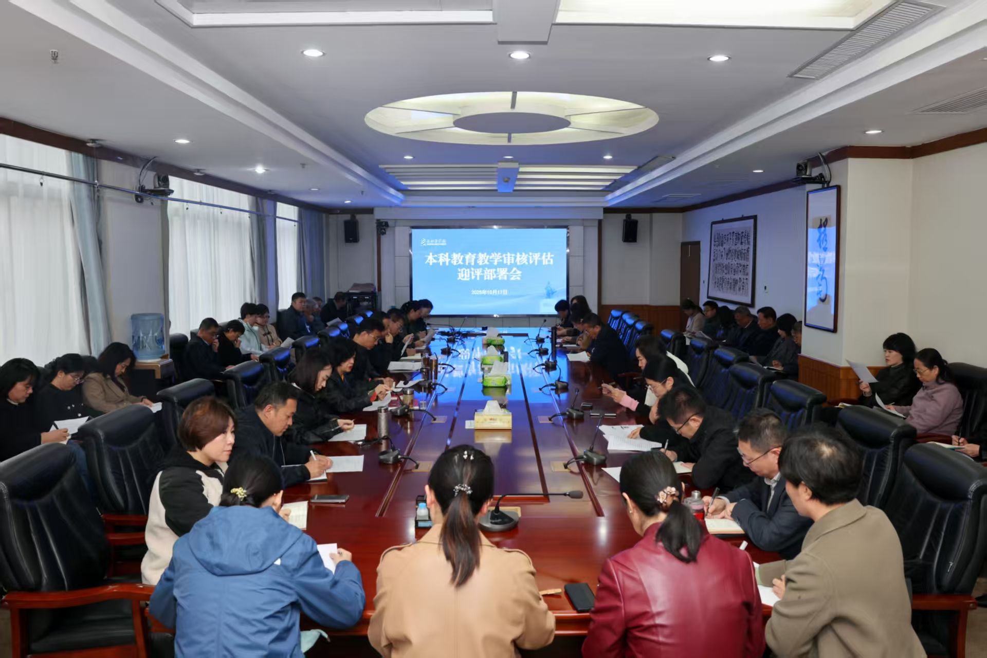10月17日,学校召开本科教育教学审核评估迎评部署会。党委书记王金胜,党委副书记、校长王旭,党委常委、副校长来丽娜出席会议,各职能部门、教辅单位负责人及各院系(部)党政负责人参加会议。会议由来丽娜主持。来丽娜围绕审核评估冲刺阶段的整体工作,从工作目标、组织领导、工作任务等方面作出系统部署。她强调,各单位要严格对标评估指标体系,全面梳理电子与纸质材料,确保内容准确、呈现规范;要精心组织各类访谈与汇报,突出特色亮点;...