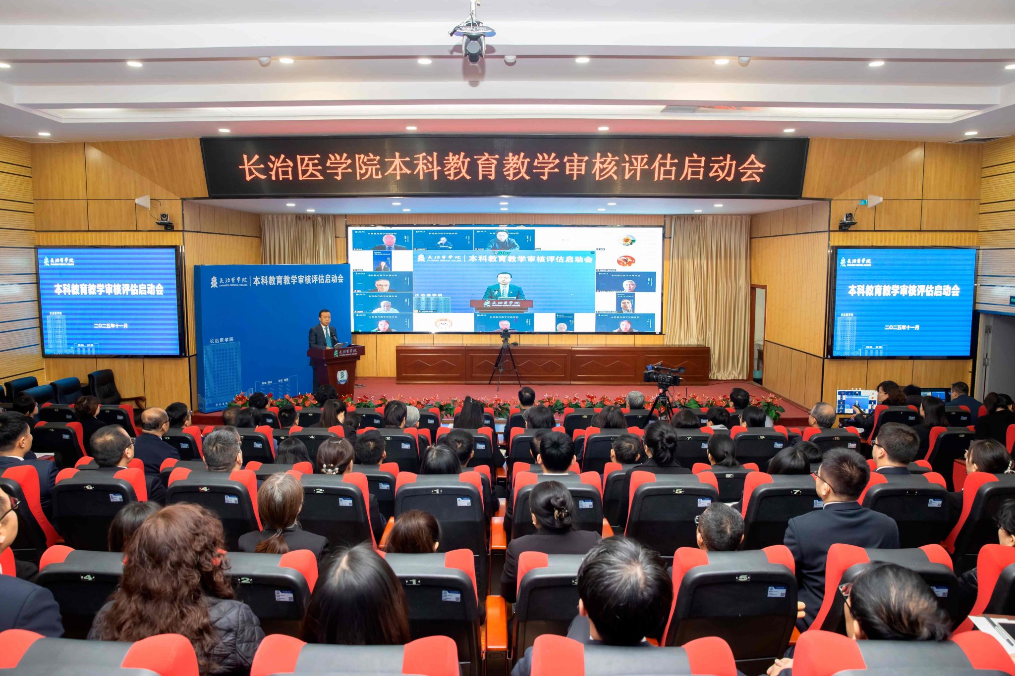 11月5日上午,学校召开新一轮本科教育教学审核评估启动会,会议以线上线下相结合的方式进行。教育部本科教育教学审核评估专家组组长、河北医科大学原校长崔慧先教授及专家组、秘书组全体成员,省教育厅一级巡视员王东及相关部门负责人在线上参会。全体校领导、各单位党政负责人、校教学督导委员会委员、教师代表、学生代表线下参加会议。校党委副书记、校长王旭主持会议第一阶段。校党委书记王金胜代表全校师生向与会专家和领导致以最热烈的欢迎和最诚挚的感谢。...