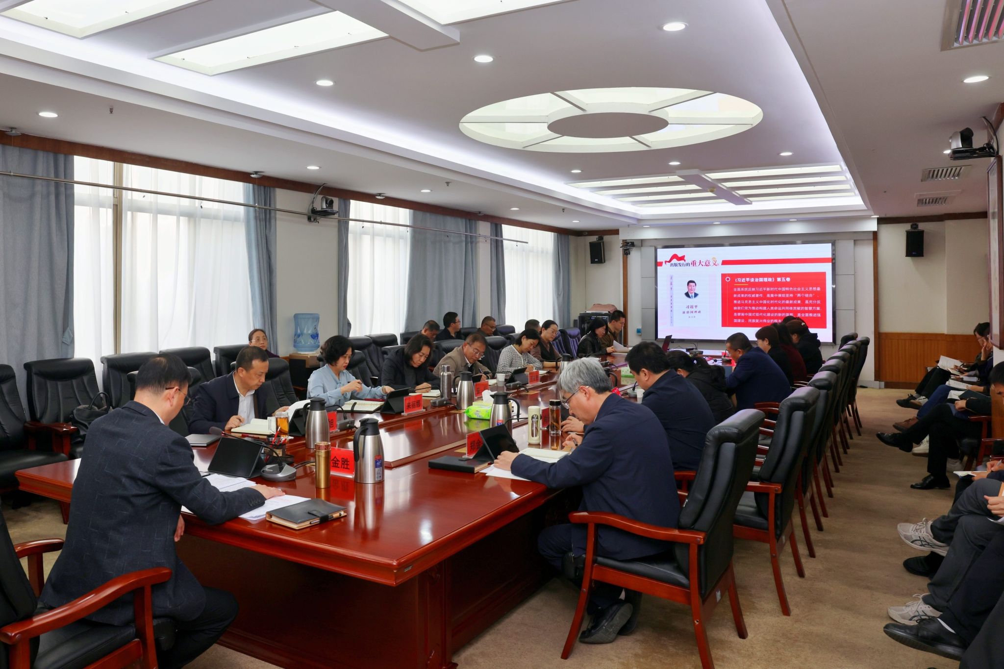 10月30日下午,我校召开党委理论学习中心组学习会,专题学习《习近平谈治国理政》第五卷。学习会由党委书记王金胜主持,中心组成员参加,党(校)办、各二级党组织负责人及机关第一党总支宣传统战党支部全体党员列席。本次学习会集中学习了《习近平谈治国理政》第五卷第一至五专题,重点学习了培育和发展新质生产力、一体推进教育科技人才事业发展相关内容。王金胜指出,《习近平谈治国理政》第五卷是全面系统反映习近平新时代中国特色社会主义思想最新成果的权威著作,...