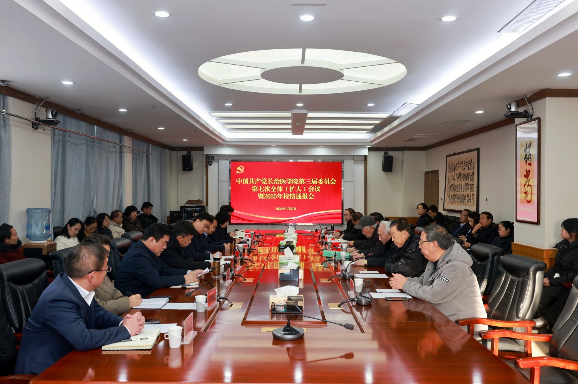 1月23日上午,中共长治医学院第三届委员会第七次全体(扩大)会议暨2025年校情通报会在科技楼1号会议室召开。我校党委书记王金胜,党委副书记、校长王旭,党委常委、纪委书记、监察专员段发明,党委常委、副校长来丽娜,党委常委、副校长尚进平出席会议,学校党委委员、离退休人员代表、民主党派代表、无党派人士代表、师生代表及相关部门工作人员共计50余人参加会议。会议由来丽娜主持。会上,王旭通报了2025年学校发展情况。他指出,...