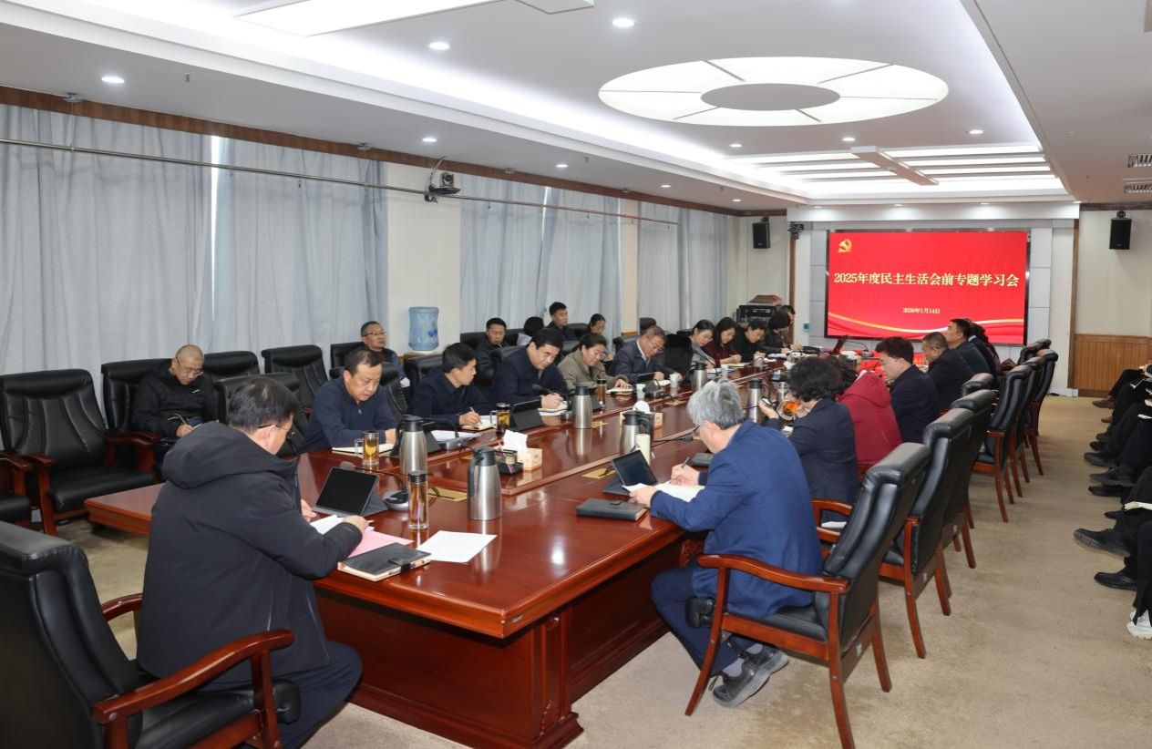 1月14日,我校党委举行2025年度民主生活会前专题学习会暨校党委理论学习中心组2026年度第一次(扩大)学习会,专题学习习近平总书记在党的二十届四中全会第二次全体会议上的重要讲话精神、习近平总书记在中共中央政治局民主生活会上的重要讲话精神,为开好2025年度民主生活会打牢思想基础。学习会由党委书记王金胜主持,中心组成员参加,党委(院长)办公室主任邢育宏、各二级党组织书记列席。王金胜结合我校具体实际领学了学习内容、...