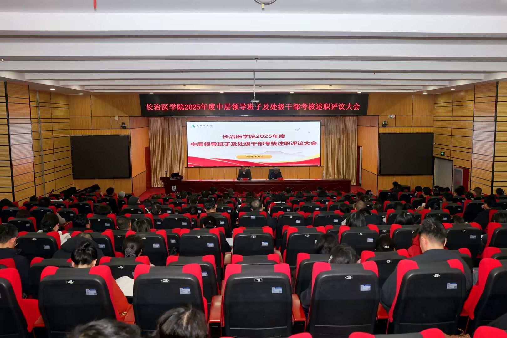 为深入学习贯彻党的二十届四中全会精神,进一步统一思想、明确方向、压实责任,以新担当新作为推动学校事业发展迈上新台阶,1月16日下午,我校在济世厅召开2025年度中层领导班子及处级干部考核述职评议大会。学校党政领导、全校副处级以上干部、教师代表共计200余人参加会议。党委副书记郑金平主持会议。本年度考核述职采取现场述职与书面汇报相结合形式进行,切实把年度考核述职转化为总结成绩、分析问题、厘清思路、谋划工作的重要环节和强大动力。...