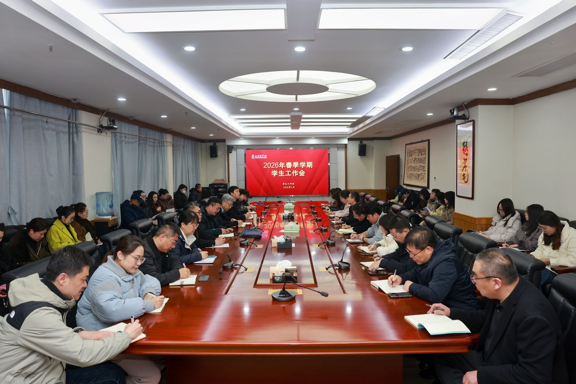 2月28日上午,我校召开2026年春季学期学生工作会。校党委副书记郑金平出席会议并讲话,各院系副书记、学工组长及学工部全体人员参加。会议由学工部部长裴振主持。郑金平在讲话中指出,辅导员是学生成长道路上的知心人和引路人,是落实立德树人根本任务的核心力量。他结合新学期学校工作部署,围绕学生思想政治教育、身心健康、日常管理、学风建设及辅导员队伍能力提升等方面提出要求。他强调,要抓住建校80周年契机,深入开展红医精神和校训精神教育,...