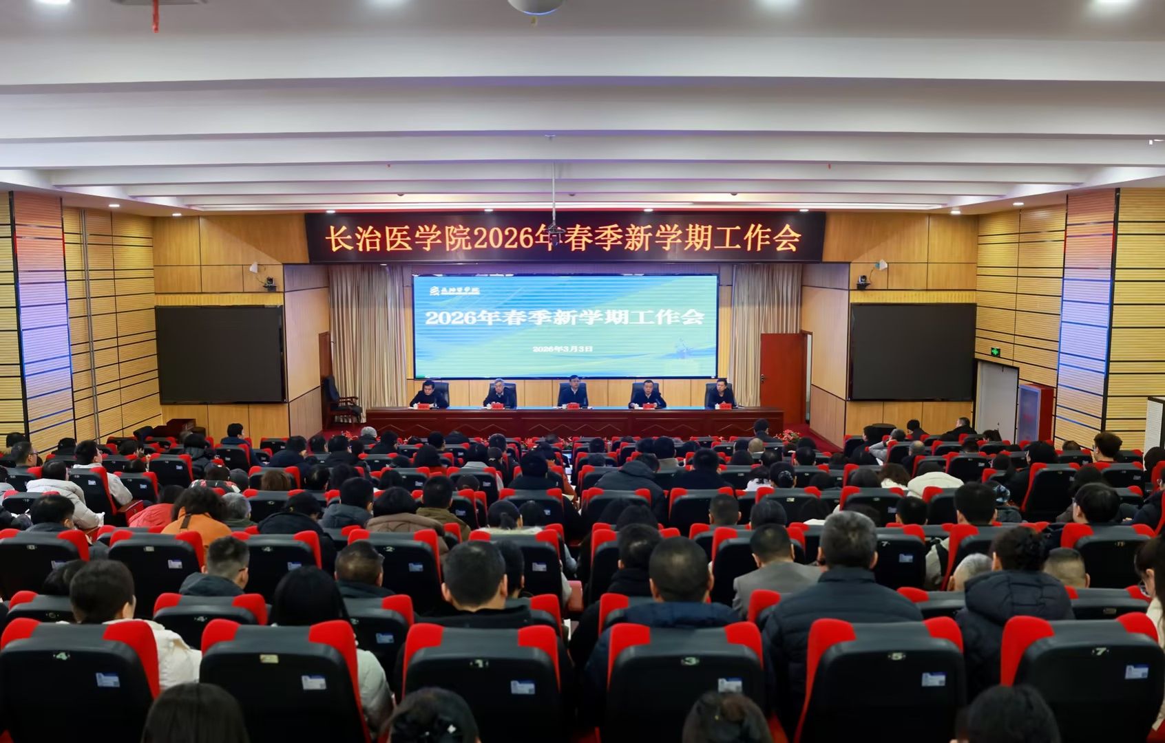 3月3日上午,我校在济世厅召开2026年春季新学期工作会议,系统谋划部署新学期各项重点工作,进一步统一思想、凝聚共识、压实责任、鼓足干劲,为学校新一年高质量内涵式发展明确方向、划定路径、夯实基础。校领导王金胜、王旭、郑金平、段发明、尚进平出席。各直属附属医院书记、院长,校本部科级以上干部、教研室(实验室)主任,全体辅导员参会。会议由党委书记王金胜主持。会上,党委副书记、校长王旭以高等教育“变与不变”的辩证思维,...