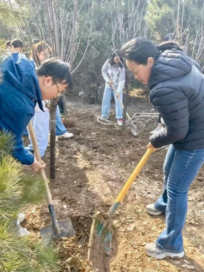 在植树节来临之际,麻醉学系联合学校青年志愿者协会,赴大辛庄农场开展“共植青绿见初心”主题植树活动,麻醉学系师生代表、党团员及青年志愿者共同参与,以实际行动践行生态责任。活动现场,党员代表率先垂范,示范植树技巧并全程细致指导,场地负责人同步讲解挖坑、扶苗、填土、压实等关键要领。在党员引领下,师生们迅速分组、分工协作,严格按照操作规范完成每一道工序,还细心在树苗根部预留引水凹槽,一丝不苟的态度彰显着实干担当,...