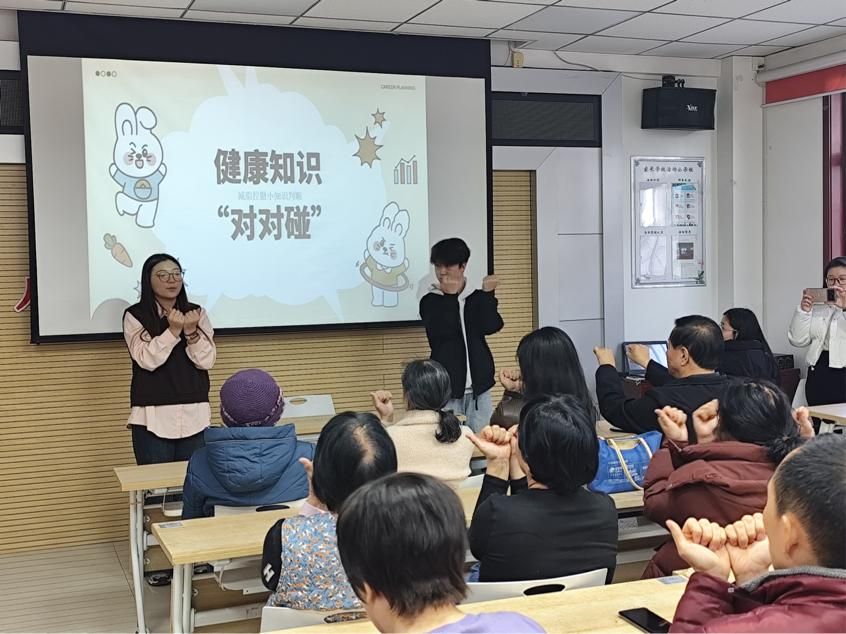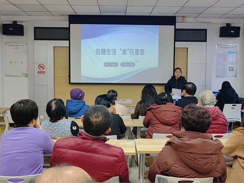 品牌筑基,专业服务靶向发力。“健康加油”党建品牌立足健康管理、传播学专业优势,聚焦群众最关切的健康痛点精准施策。本期活动紧扣减脂控糖需求,由党员骨干组成的宣讲团队开设两大主题课堂:既有科学减脂的系统解读,戳破极端节食误区,传授饮食搭配、运动规划等实操方法;也有糖尿病防治的实用指导,从复合碳水选择、低GI食物搭配到烹调减糖技巧,层层递进解析控糖关键。“这些知识都是咱们日常用得上的,党员老师讲得特别明白!” 社区居民边听边记,不住为专业讲解点赞。