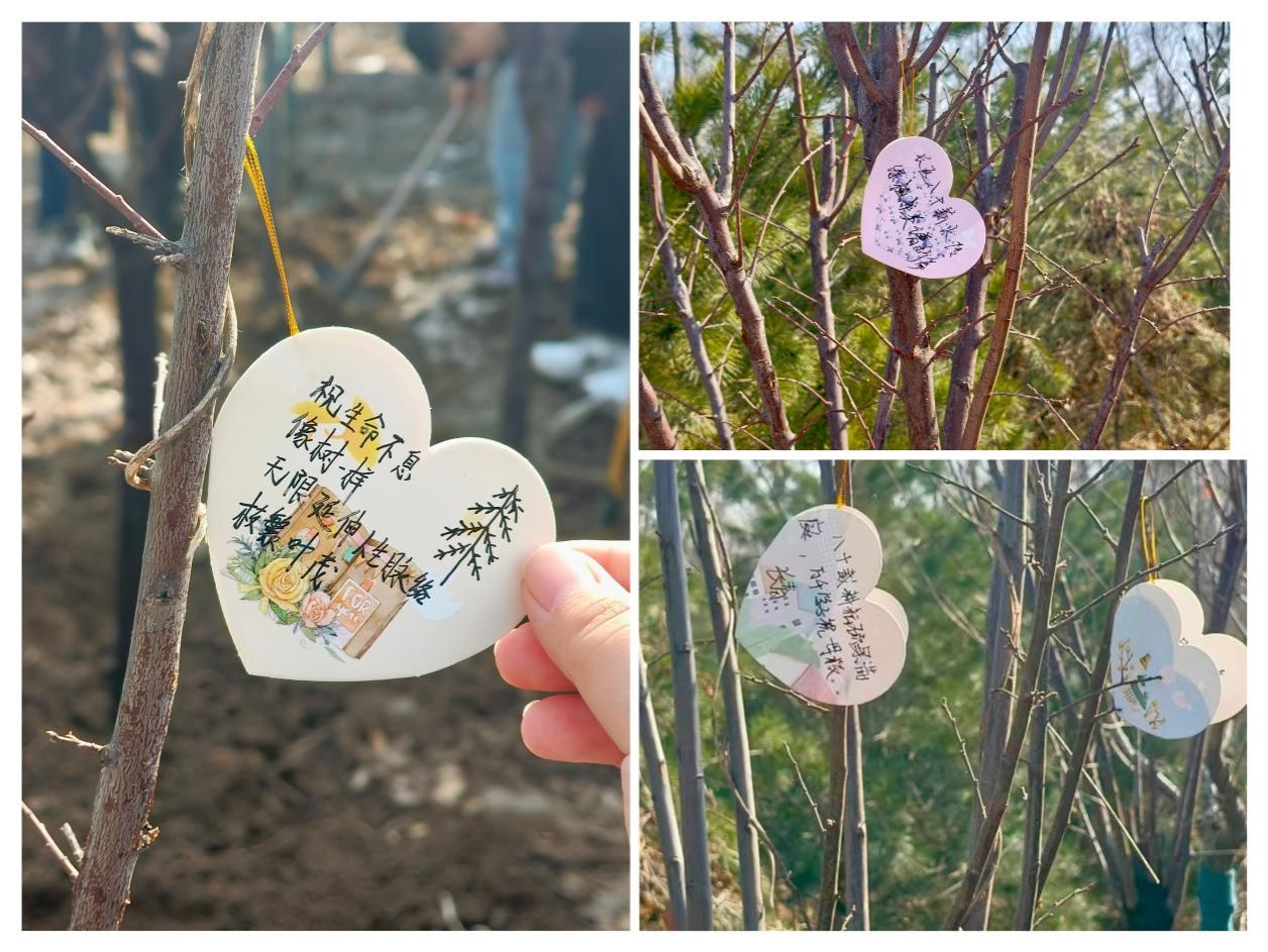 劳动间隙,师生们把对学校建校80周年的美好祝愿写在卡片上,系于树苗枝头,以新苗寄深情,用绿意传祝福。活动最后,全体人员合影留念,定格下青春与绿色相融、责任与希望共生的珍贵瞬间。
