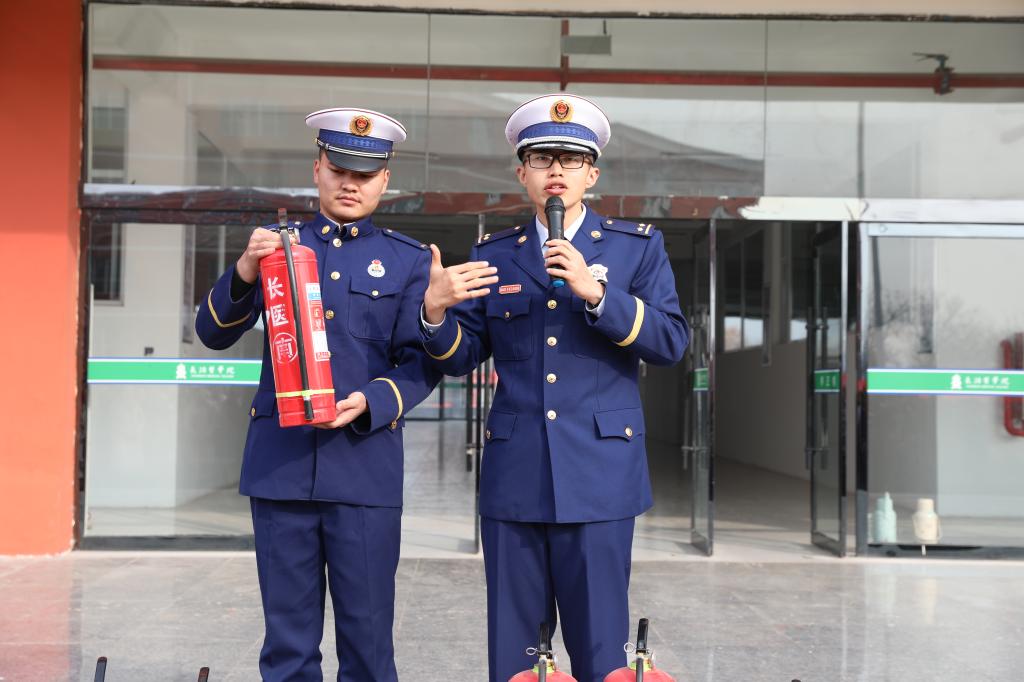 在全体人员撤离到演练安全区域后,由长治消防救援队姬威威中队长给参演师生讲解了消防安全逃生知识,演示了灭火器的正确使用方法。