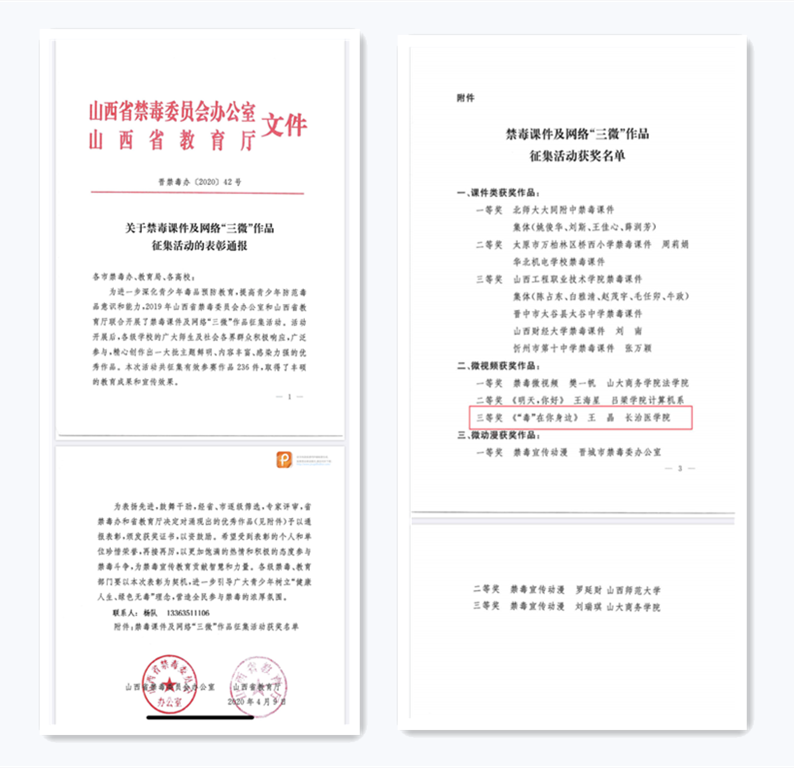 我校作品在山西省禁毒课件及网络“三微”