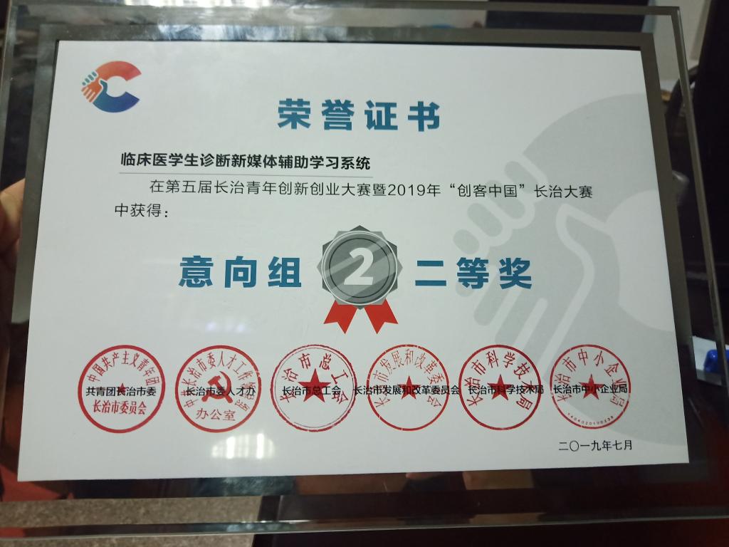 近日,2019年“创客中国”长治大赛颁奖典礼在长治电视台演播大厅落下帷幕。我校公共卫生与预防医学系1501班王帅的“临床医学生诊断新媒体辅助学习系统”项目荣获意向组二等奖并获奖金5000元,公共卫生与预防医学系1802班张璇的“青春定格馆”项目荣获创意组三等奖并获奖金3000元,运动人体科学系1701班徐国巍的“宸星文化-小行星幼儿足球文化产业”项目荣获初创组优秀奖,我校获“优秀组织奖”。