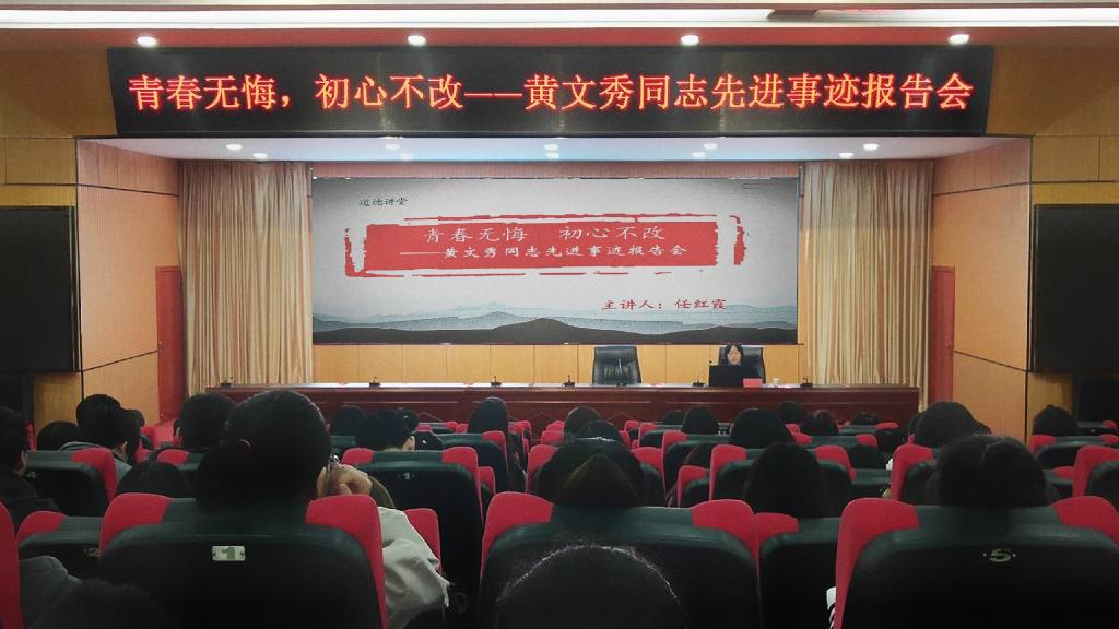 任红霞从“爱党爱国无限忠诚的政治品格”“不畏艰险勇挑重任的担当精神”“勤奋好学躬身实践的可贵意志”“投身事业毕生奉献的高尚情怀”等方面讲述了黄文秀同志在校期间以及在百坭村工作时的感人事迹。她强调,只有扎根泥土,才能懂得人民,黄文秀同志用最美好的青春诠释了共产党人的初心与使命;广大师生要向黄文秀学习,坚守初心和使命,发扬时代精神,勇于担当奉献,做新时代的奋斗者。