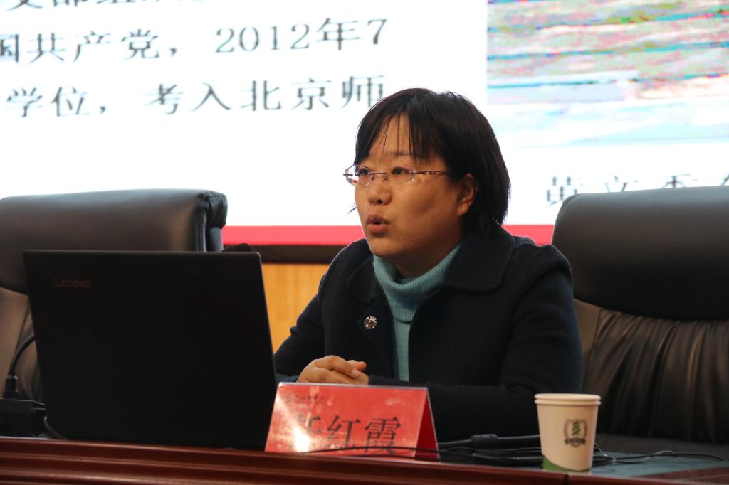 为深入贯彻落实习近平总书记关于黄文秀同志先进事迹的重要指示精神,进一步推进“不忘初心、牢记使命”主题教育,11月9日上午,我校特邀长治学院思政部党总支书记任红霞作黄文秀同志先进事迹主题报告。报告会由我校党委宣传部部长崔红主持。教师代表、检验系全体学生、学生团干共300余人聆听报告。