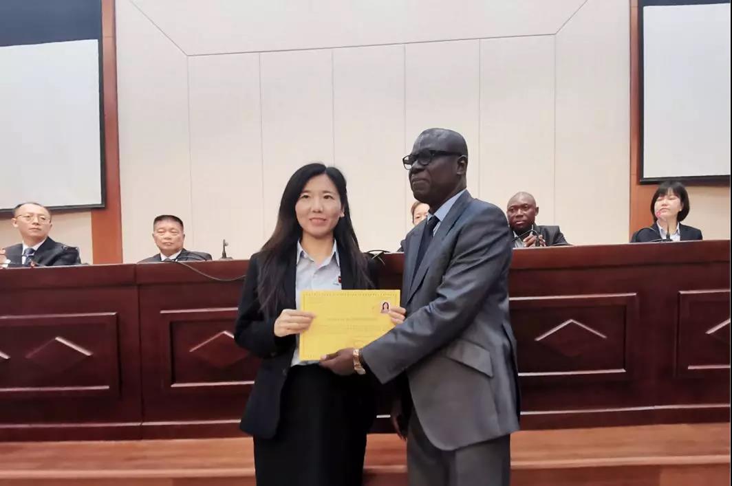 11月25日,多哥共和国卫生部举办中国援外医疗队换届迎送仪式暨表彰大会。多哥卫生部秘书长Dr AWOUSSI Sossinou(阿乌希博士)代表卫生部长对中国第22批援多哥医疗队两年来医疗工作给予充分的肯定以及衷心的感谢,对中国医疗队洛美点队员予以表彰。会中,授予我校附属和平医院针灸科张琴医生医疗工作荣誉证书,以表彰她在多哥2017年9月至2019年11月工作期间为中多卫生合作及多哥人民的健康做出的突出贡献。