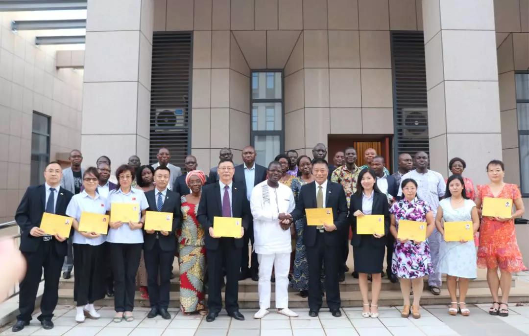 在中国驻多哥大使馆举行的新老医疗队迎送招待会上,受表彰医疗队员受到巢卫东大使及卫生部长Dr MOUSTAFA Mijiyawa(米吉亚瓦博士)的亲切接见。