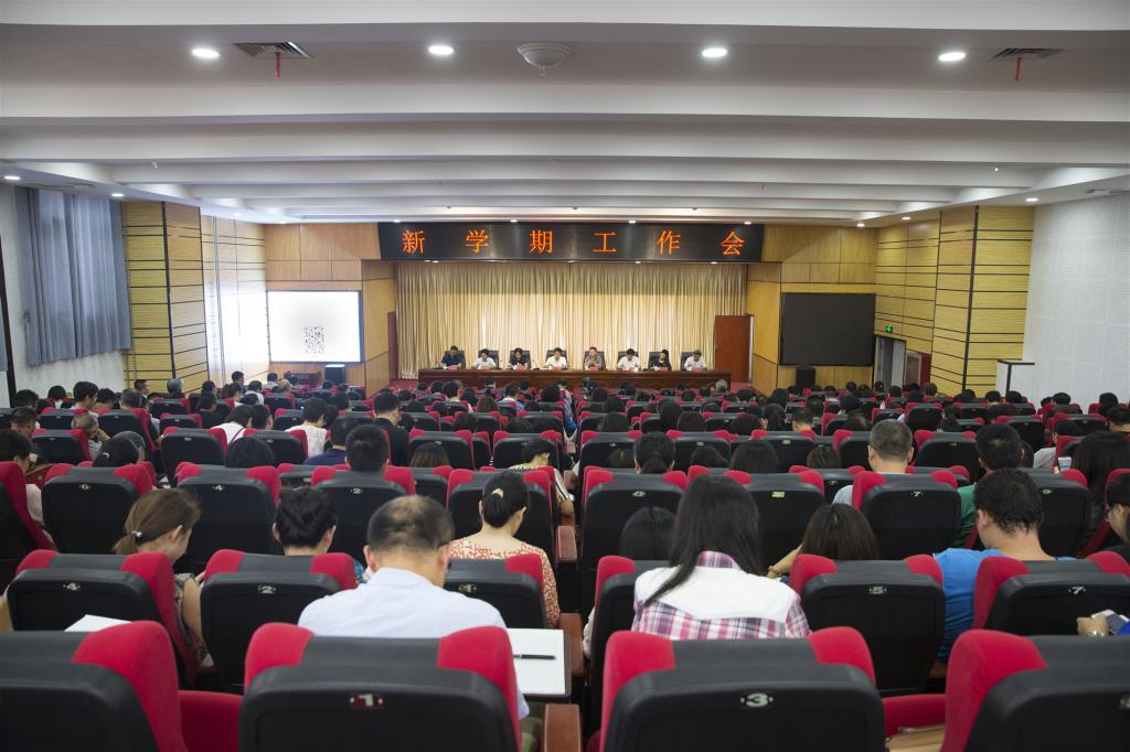 8月23日下午,我校在临床技能中心学术报告厅召开新学期工作会。学校党政领导出席会议,校本部科级以上干部、附属医院领导班子成员、各系部教研室(实验室)主任(副主任)、全体思想政治辅导员、党支部书记参加了会议。会议由校党委副书记张芳萍主持。