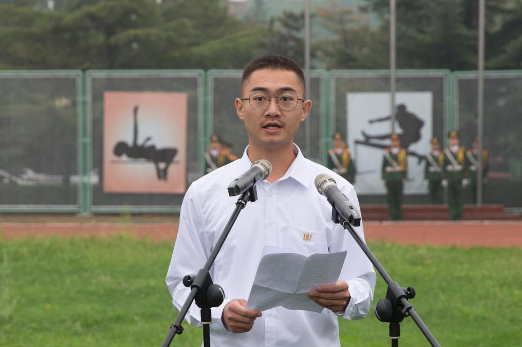 学生代表麻醉系1602班梁夏军同学在国旗下发言。他讲到,新学年,新起点,新征程,我们必须牢记习近平总书记爱国、励志、求真、力行的教诲,坚定理想信念,追逐青春梦想;锤炼高尚品格,奠定人生基础;练就过硬本领,夯实专业素质;勇于创新创造,提升综合能力。