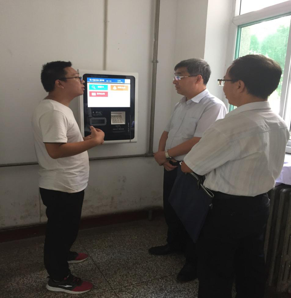 郑金平实地查看了一卡通圈存机、自助补卡一体机,听取了技术人员对其功能讲解后,对设备的安全使用、网上支付对接、操作细节等进行详细询问,并就下一步培训、使用提出具体要求。