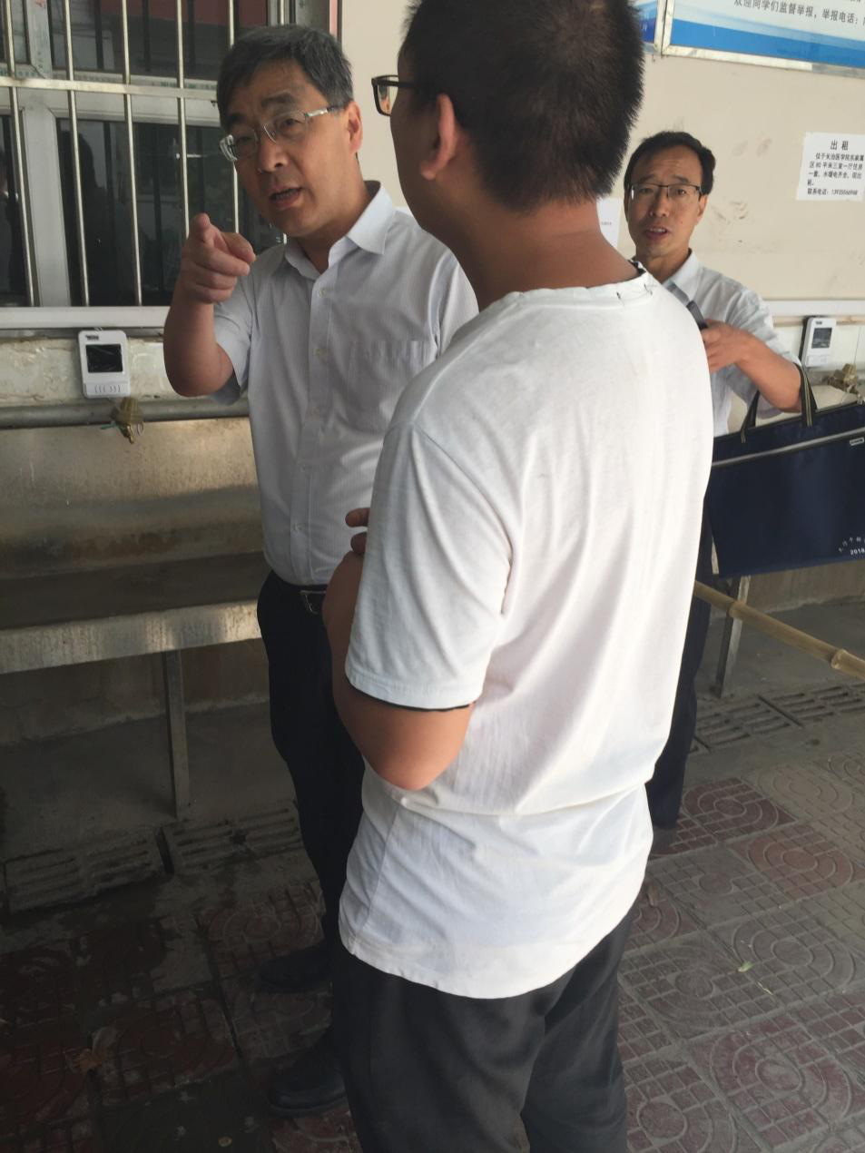 在学生开水房、第一学生公寓,郑金平分别查看了一卡通开水控制系统、一卡通公寓人脸识别系统上线和施工情况,详细询问了楼管员对有关公寓管理、公寓安全的实际需求和建议,并就下一步工作提出了具体要求和安排。