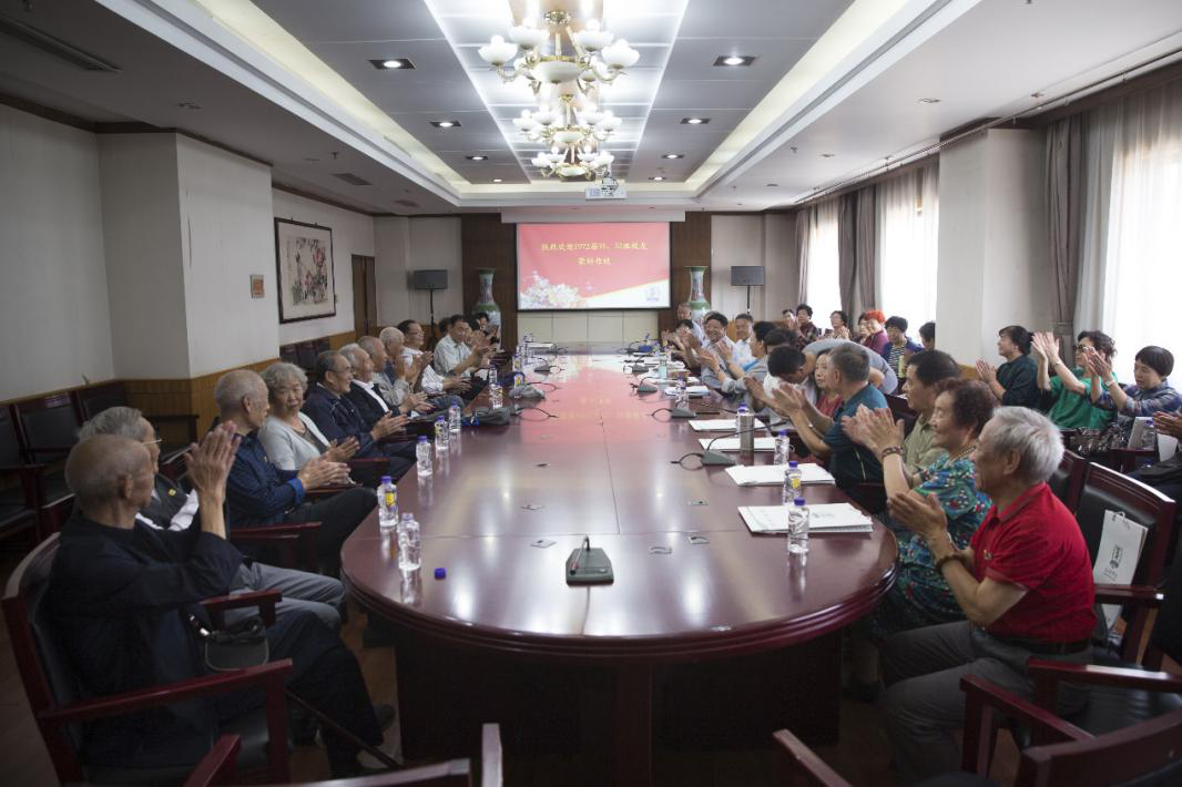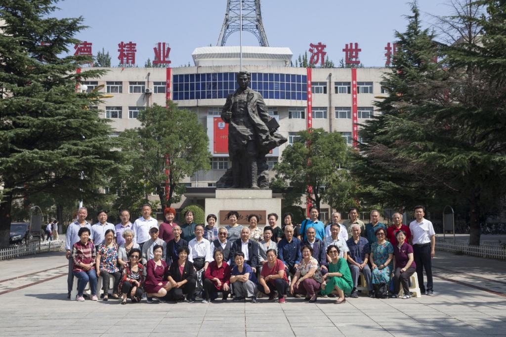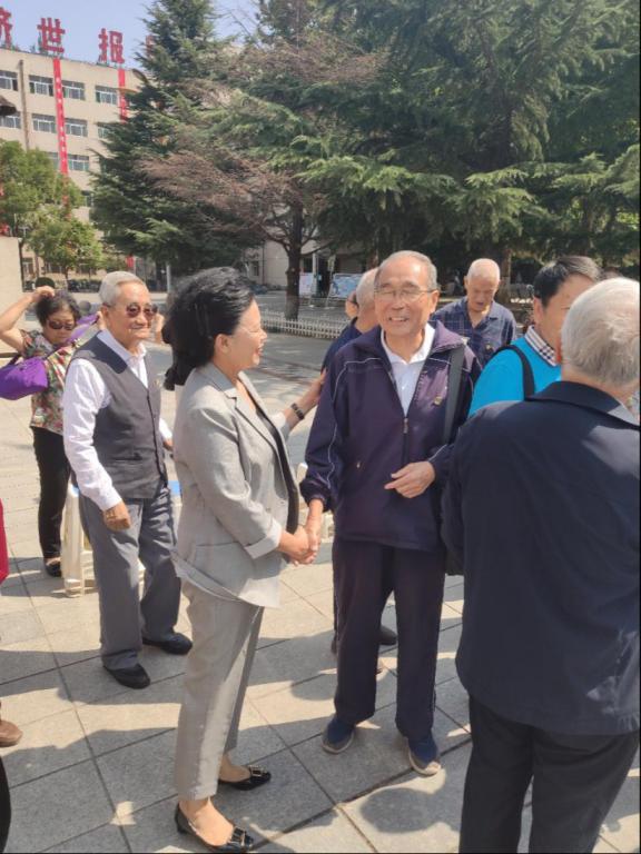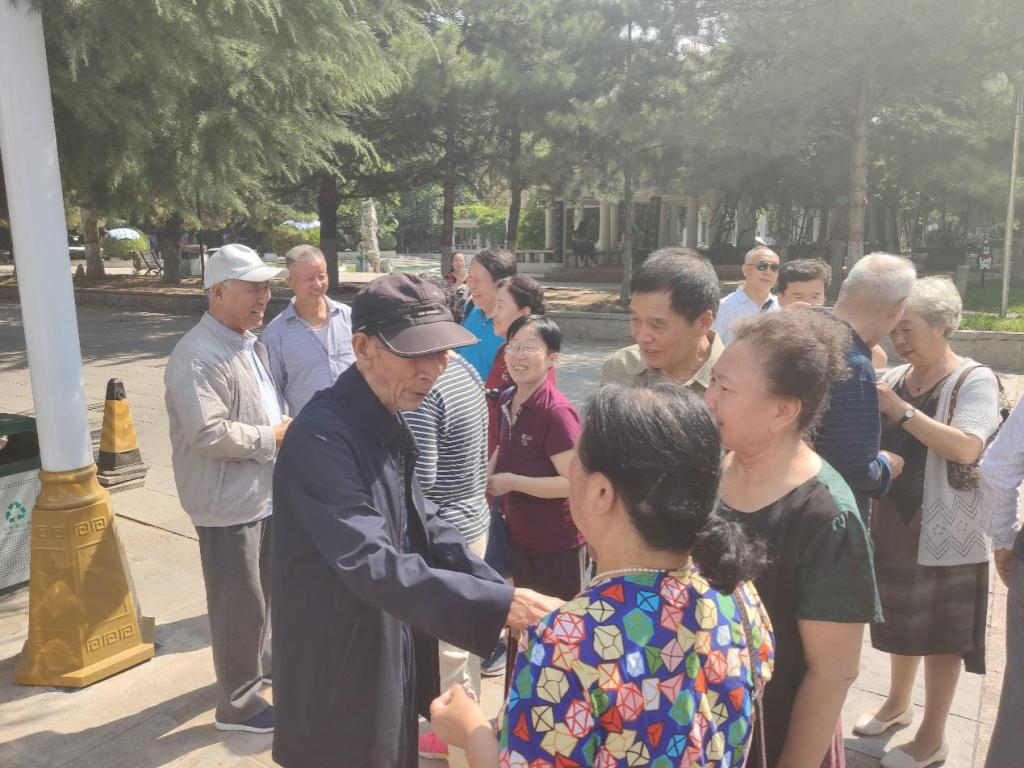 随后大家来到体育馆,馆内的环境勾起了大家运动的欲望,校友们自行组织打起了篮球和羽毛球,当年的校篮球队队员风采依旧,现场笑声不断,大家仿佛回到了45年前的学生时代。运动完后,同学们来到1946广场,与当年的教师代表亲切交谈,共叙师生情,并在何穆像前合影留念。
