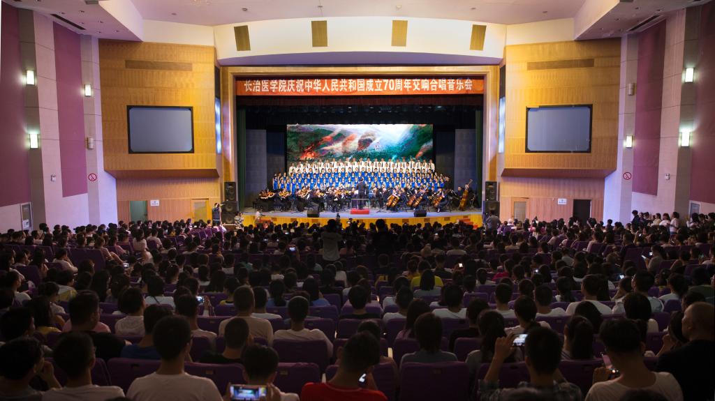 9月8日晚8点,我校在科学会堂举办庆祝中华人民共和国成立70周年交响合唱音乐会。校党委副书记张芳萍、副校长宋晓亮与师生一同聆听音乐会。