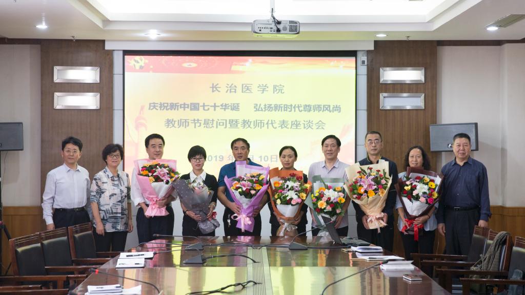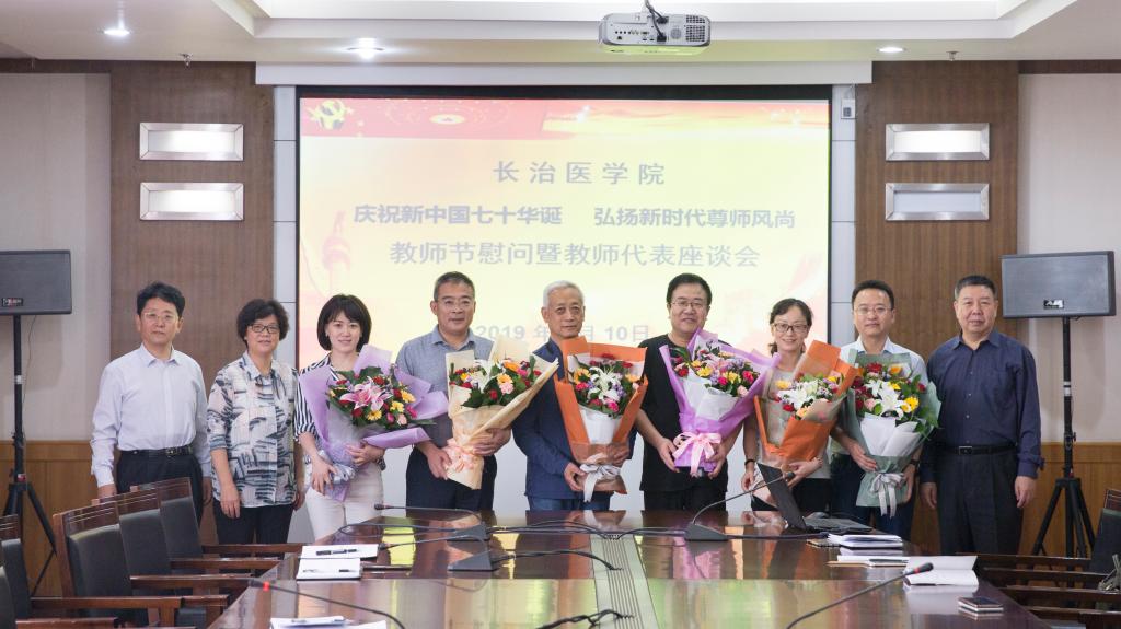 教师节慰问座谈会。10日上午,学校领导慰问了在学校事业发展中爱岗敬业、担当作为、努力工作、奋发有为的先进教师代表和离退休教师代表,并召开了座谈会。