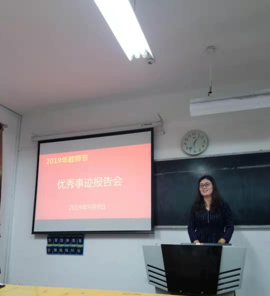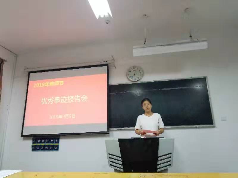 优秀教师先进典型事迹交流报告会。围绕教师节主题,紧密结合“不忘初心、牢记使命”主题教育,学校各二级单位(部门)遴选了3-5名优秀教师组成“报告团”,于9月6日至10日期间交叉到其它二级单位(部门)开展了先进事迹交流报告会。通过弘扬高尚师德,宣传典型先进事迹,充分展示广大教师和教育工作者改革创新、奋发有为的新时代良好精神风貌,用身边的先进典型带动感召更多的教师见贤思齐,教育引导广大教师和教育工作者崇德修身、潜心教书育人,营造了尊师重教的浓厚氛围。