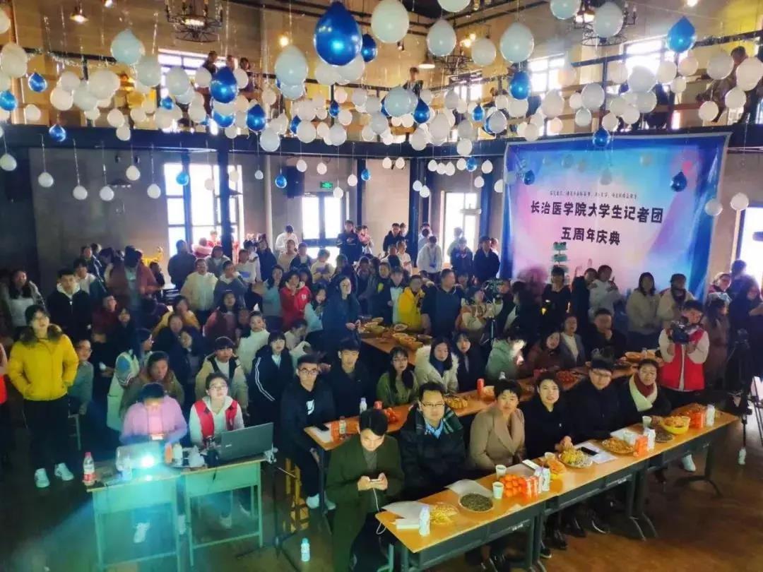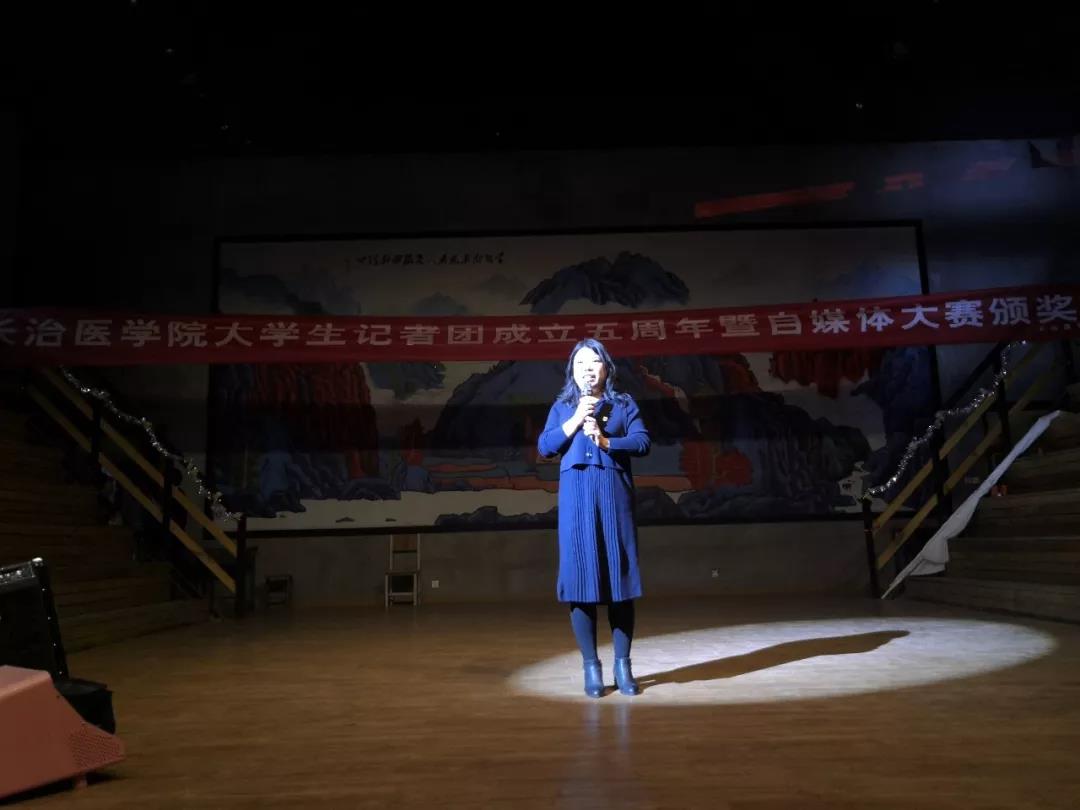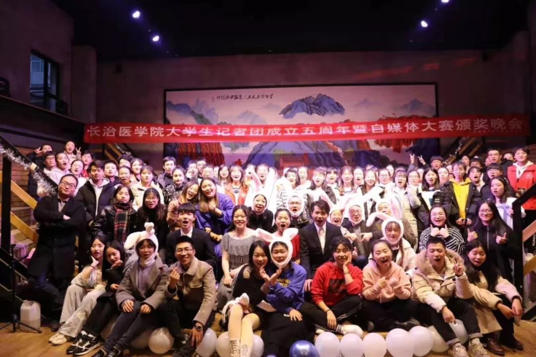 窗外飞雪如梅花,室内温暖尽芳华。11月30日晚,党委宣传部在音疗基地举办了长治医学院大学生记者团成立五周年庆典暨自媒体颁奖晚会。校团委副书记连静、人文艺术传媒系党总支副书记李妍、学工部副部长裴振、宣传部副部长张建芳、宣传部贺一斌出席晚会。记者团历届团长、部分社团组织学生代表300余人参加庆典晚会并共同观看了演出。