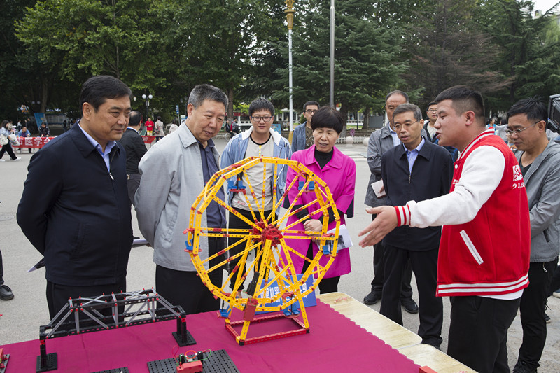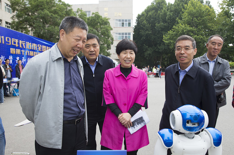 长治市副市长景普秋,长治市科协党组书记、主席王海宏,副主席史爱文和郜惠丰等出席活动现场;我校党委副书记、校长郑建中陪同景普秋副市长一行人在活动现场进行观看和体验。
