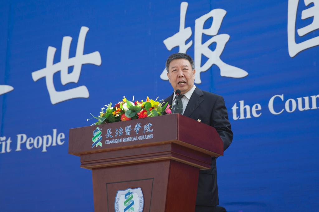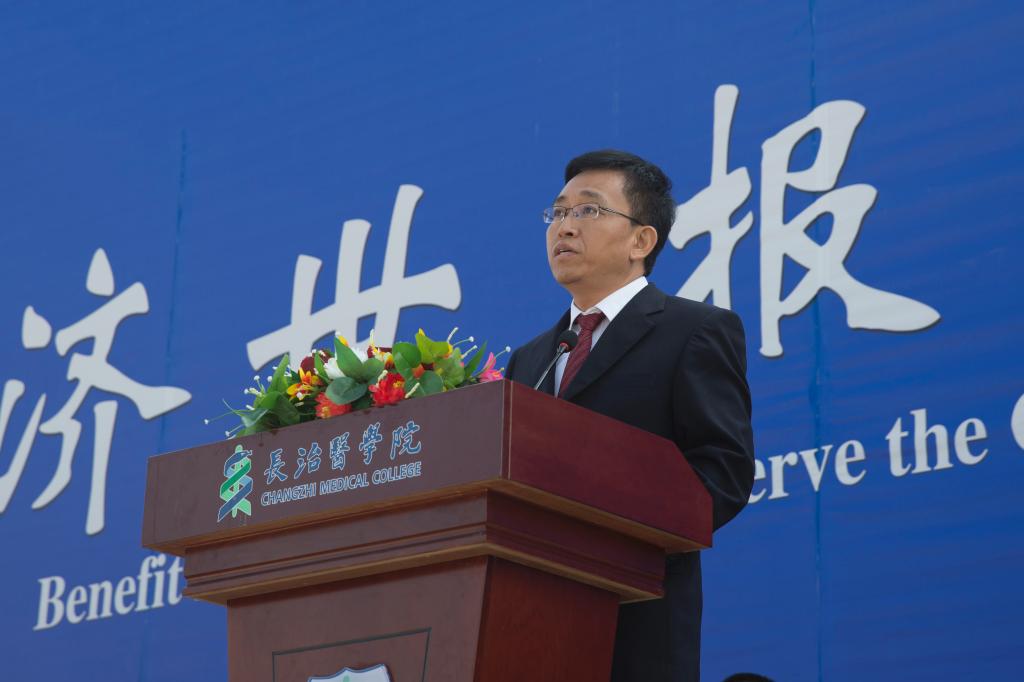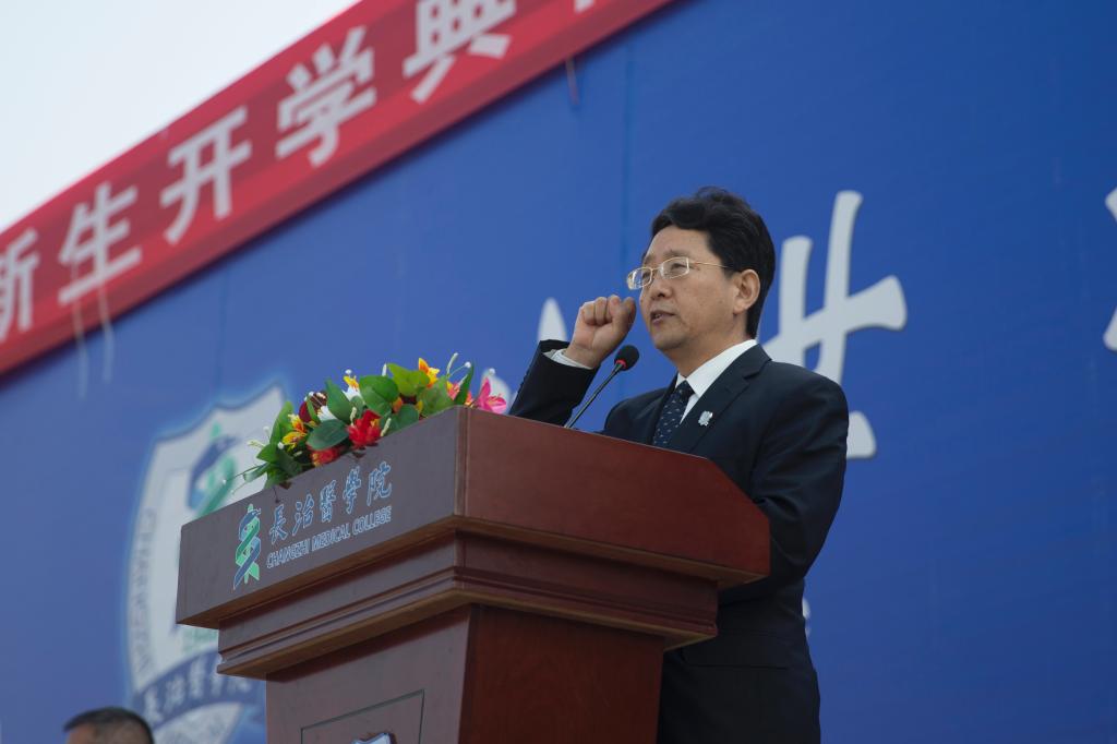 郑建中发表了热情洋溢的讲话。他代表学校党政领导和全校教职员工,向来自全国各地的2500余名新同学表示热烈的欢迎,并向同学们的父母和老师们表示诚挚的敬意和衷心的感谢。他指出,与往年相比,今年新生开学典礼的一个最大变化是把会场设在了五龙校区,这是我校在五龙校区体育场举行的第一次开学典礼,标志着我校进入一个新的发展时期,学校翻开了新的历史篇章。他向同学们介绍了新校区的规划,和大家一起品读长医,深情回顾了学校创建、发展、壮大的历程,回顾了老校长何穆先生的高尚品质和家国情怀。