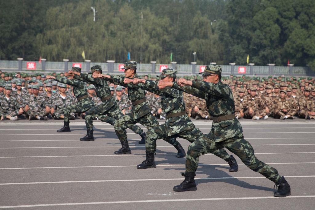 大会首先进行了军训汇报表演。在庄严的升国旗仪式后,受训学生和着雄壮的进行曲,迈着矫健而整齐的步伐,依次走过主席台接受领导们的检阅。分列式汇报结束后,受训学生方队进行了擒敌拳、匕首操表演,展示了2019级学子蓬勃向上的精神风貌;国旗护卫队队员、教官助理进行了队列示范表演,展示了属于他们的青春风采;承训教官们进行了精彩的队列动作、擒敌格斗示范表演,表现出高超的军事素养和过硬的军事技能,赢得了在场领导和同学们的阵阵掌声。