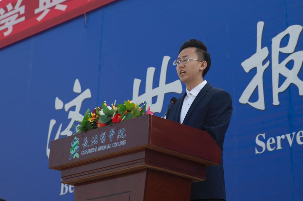 新生代表临床医学专业硕士研究生李远同学、第一临床学院雷豪豪同学分别代表2019级硕士研究生、本科生发言,表示未来将会刻苦学习、勤于实践、勇于创新,用青春和汗水浇铸梦想,以实际行动践行“厚德、精业、济世、报国”的校训,努力做德智体美劳全面发展的社会主义建设者和接班人,同人民一起奋斗,同祖国一起前进,为实现民族振兴、国家富强、人民幸福的中国梦贡献青春力量。