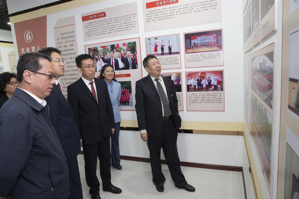 大会结束后,领导一行人到明德馆参观了我校“三全育人”成果展厅。