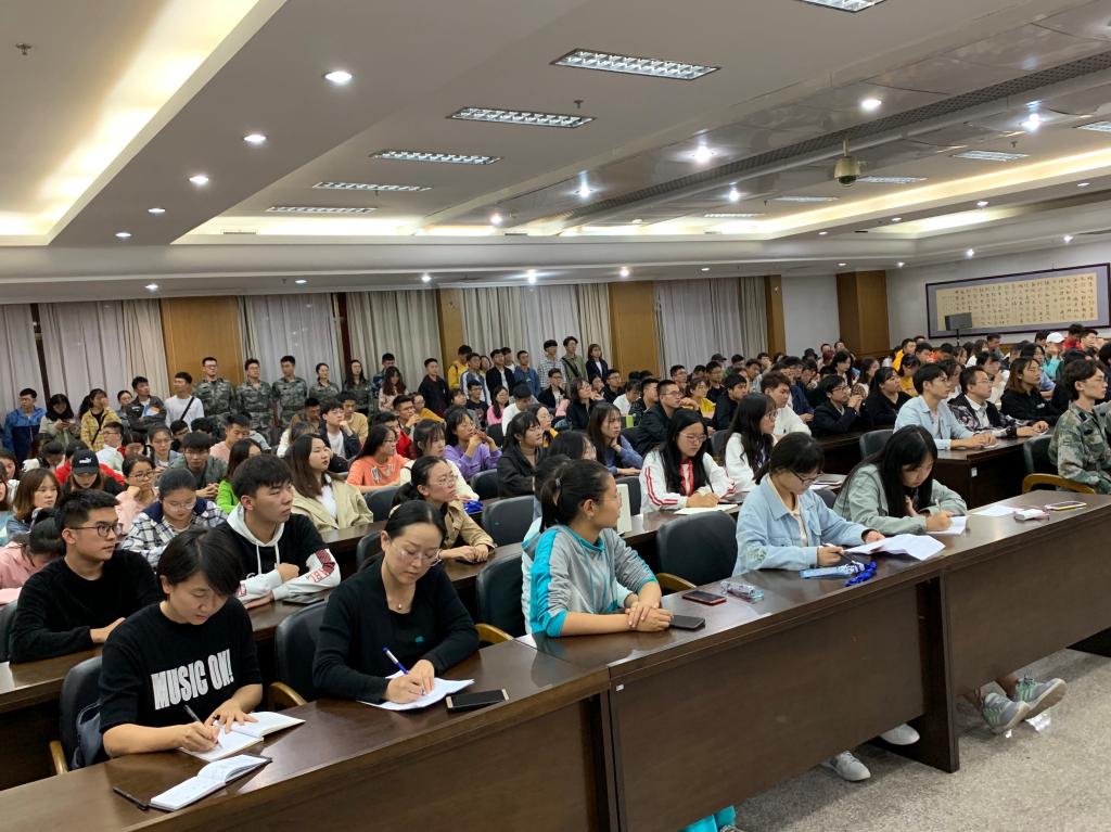 为打造一支思想过硬、作风优良的学生干部队伍,更好地履行学生干部工作职责,党委学工部(处)于9月26日晚在科技楼17层会议室召开了学生干部作风建设专题会议。学工部部长邢育宏、副部长裴振,校团委副书记连静、张丽娜出席会议;校学生会、学社联、青年志愿者协会、国旗护卫队、学风督查组、学工在线、金色年华等学生组织的主要干部和各院、系(部)学生会主席团成员、自律部部长近三百人参加会议。