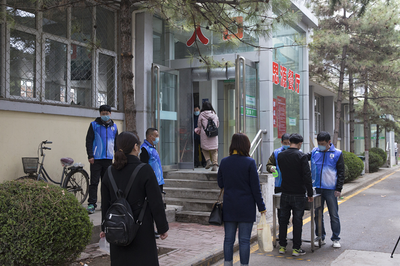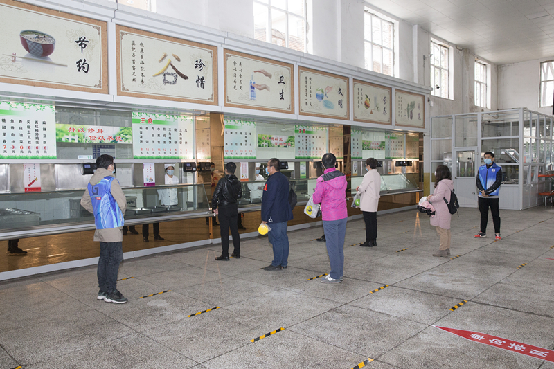 餐厅入口处工作人员在检测学生体温的同时,控制进入餐厅的人流量,学生按照错时错峰就餐、分散就餐的原则,自带餐具有序排队等候进入餐厅,并按照“七步洗手法”的要求对手部进行消毒。就餐学生进入餐厅后,在工作人员的指引下沿地面标示线到窗口打餐并刷卡支付。地面设置等候区标识,确保排队间距不小于1米。工作人员引导学生到就餐区就餐,就餐区实行一人一桌同向就餐,就餐间距大于1米。学生就餐后,佩戴口罩、携带餐具,按一米间距排队从出口处离开。