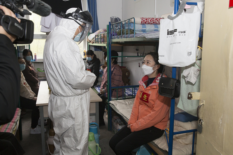 一名与该发热同学乘坐同车次、同车厢的同学,在体温正常的情况下,由工作人员引导乘坐专车到五龙校区隔离点进行医学隔离观察。