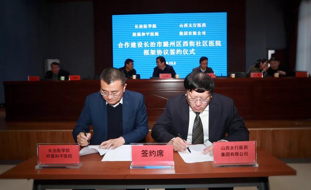 张文平、王健林分别代表双方签署长治医学院附属和平医院领办潞州区西街社区卫生服务中心(社区医院)框架协议,标志着合作迈出了实质性的一步。
