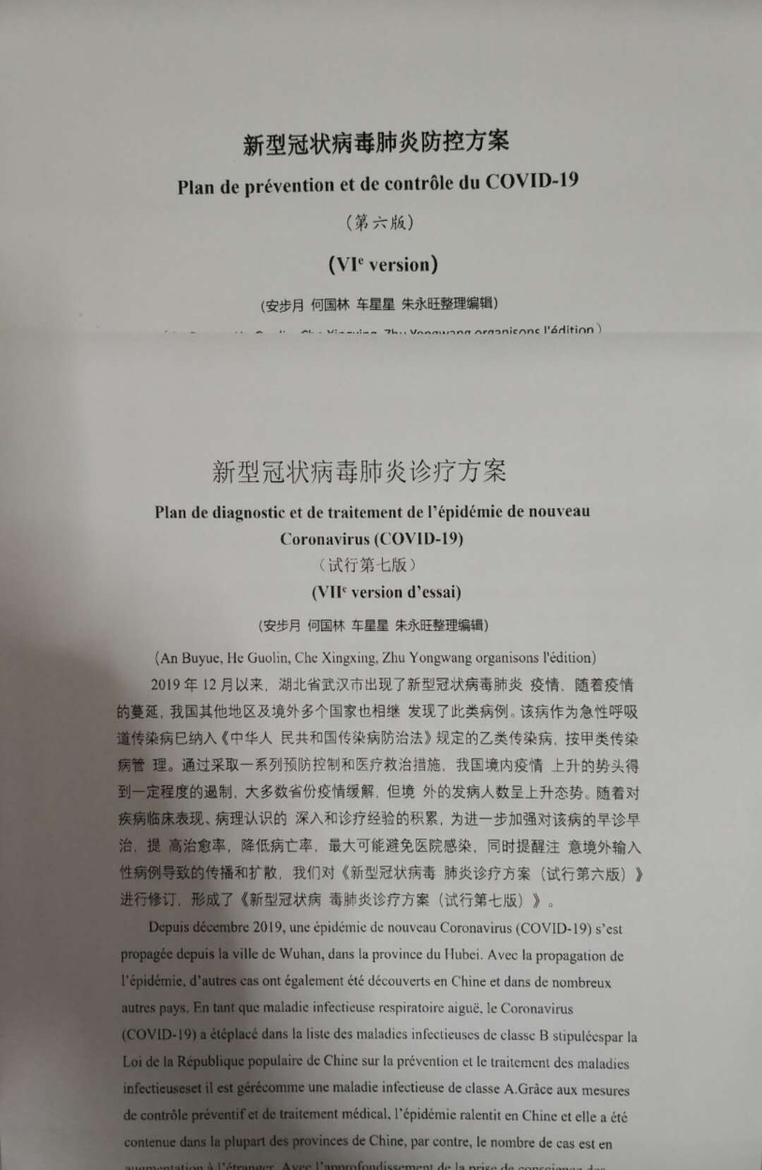 3月30日,我校援喀医疗队队员何国林在交班会上把医疗队整理的《汉—法新型冠状病毒肺炎诊疗方案(第七版)》及《汉—法新型冠状病毒肺炎防控方案(第六版)》交给了Dr.MBouche。Dr.MBouche看过资料后,立即在交班会上进行了宣讲,我方案得到极大肯定和认可。何国林又把两方案发在了科室WhatsApp群里,大家你一言我一语地讨论了起来。其中,提问最多的是“新型冠状病毒肺炎有多可怕?”“中国是如何防控的?中国是如何做到在一个月内就控制住了疫情?”“有什么神奇的防控办法吗?中医是如何防控的?”何国林热情跟大家进行了交流。