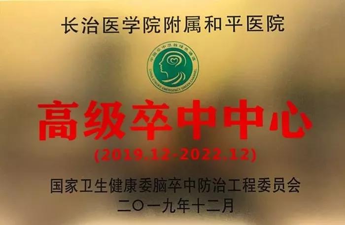 12月6日至8日,由国家卫生健康委脑卒中防治工程委员会举办的2019年脑卒中防治工作总结工作会议在武汉举行。会上,我校附属和平医院被授予“高级卒中中心”牌匾,作为长治地区首家获此殊荣的医院,本次授牌是对和平医院卒中中心工作水平的高度认可,标志着医院卒中工作走在了地区前列。
