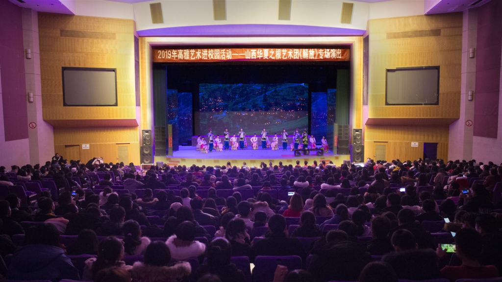 为丰富校园文化生活,提高学生们的艺术情操,12月16日晚,山西戏剧职业学院、华夏之根艺术团在我校科学会堂举办“高雅艺术进校园”活动,为广大师生带来了大型山西说唱剧《解放》。