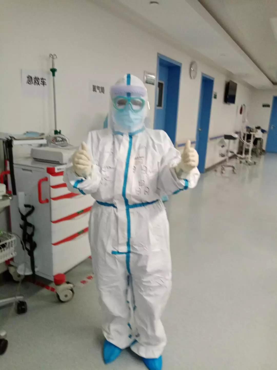 在穿脱防护服和各项工作流程的培训中,我们互相帮助,互相纠正,互相监督,务必做到万无一失。2月5日,我第一次正式上岗,心情忐忑,害怕自己不能够做好工作,是队友们的鼓励和加油,让我逐渐平复心情,变得坦然,满怀信心,以患者为中心,耐心护理,微笑服务。第一次进入病区,穿着三层衣服,戴着五层手套,两层防护面屏和护目镜,精神高度集中。随之而来的也有各种的不适应,但我们没有一个人掉队,团队协作,熟悉工作流程,做到尽心、尽力、尽责!身先士卒,勇于担当,决不退缩,是我作为一名共产党员坚定的信念。