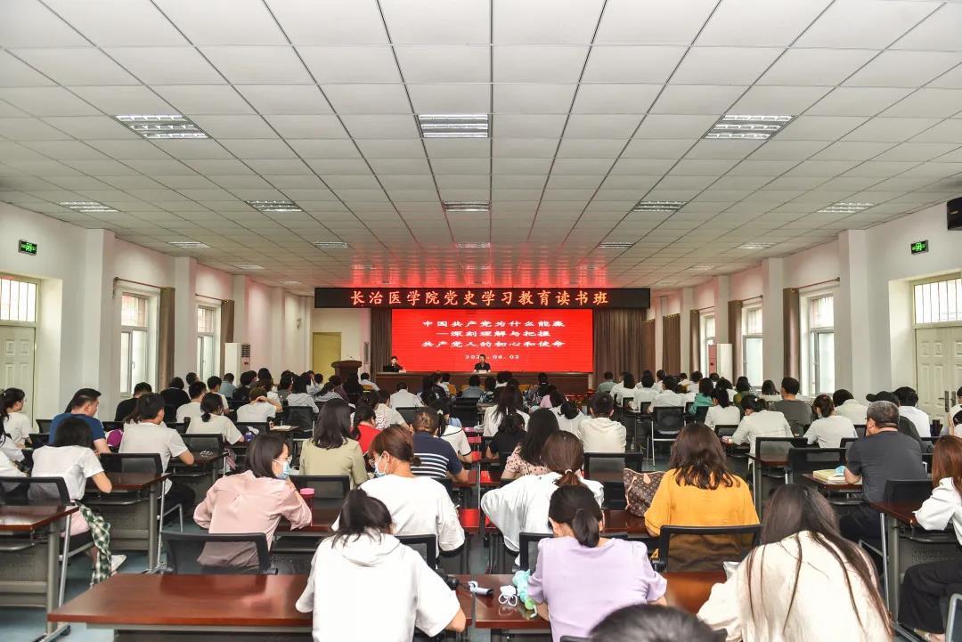 6月2日下午,我校在附属和济医院多功能报告厅举办党史学习教育读书班,特邀山西省委党校郑文靖教授作辅导报告。读书班由学校党委书记李华荣主持。校纪委书记、监察专员徐建和,思政教师、宣讲团成员、各党总支书记,附属和济医院领导班子成员、党支部书记、党务部门负责人,学校辅导员、第二临床学院学生代表参加了读书班学习。