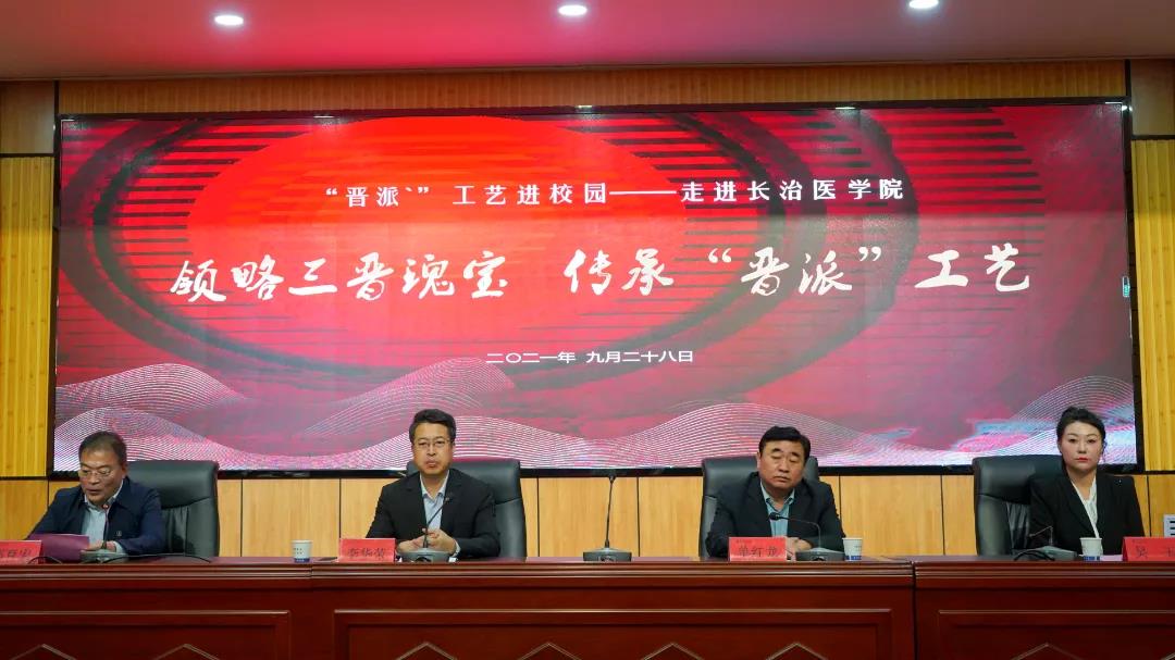 为弘扬传承中华优秀传统文化、宣传推广我省工艺美术技艺,由山西省教育厅、山西省文化和旅游厅共同主办,山西艺术职业学院承办的“晋派”工艺进校园系列活动先后在各地高校拉开帷幕。9月28日下午,“晋派”工艺进校园活动走进了长治医学院,长治医学院党委书记李华荣出席活动并致辞,山西艺术职业学院院长单红龙在活动仪式上讲话,八名省级工艺美术大师、非物质文化遗产传承人和长医一百余名师生参加活动。