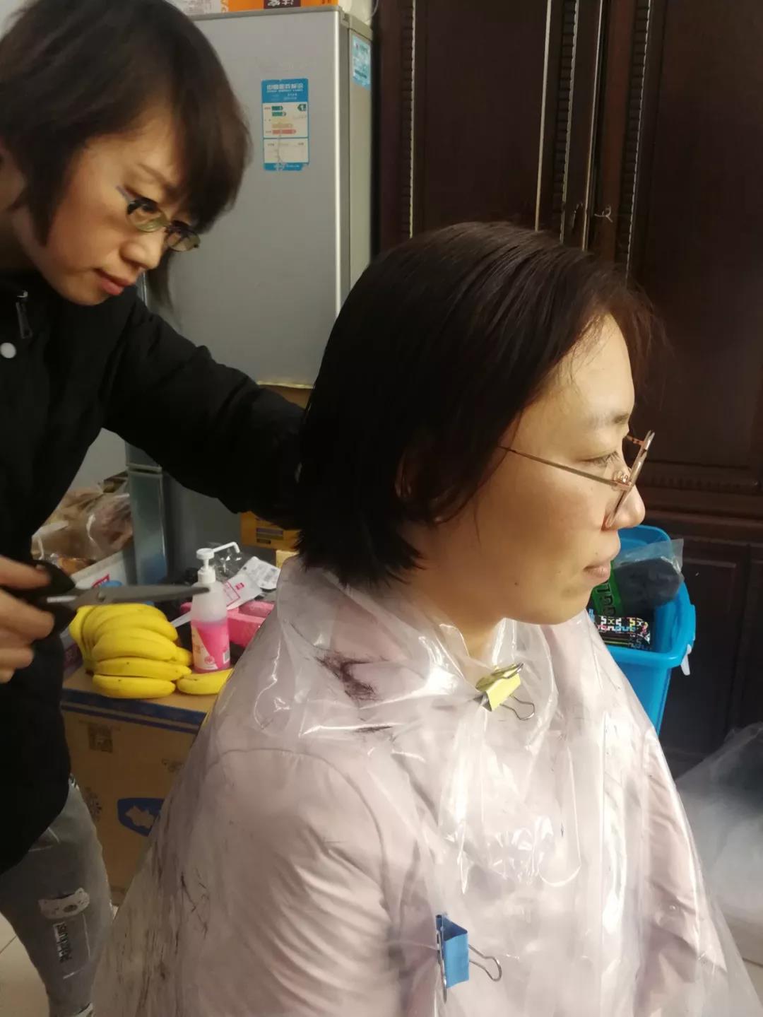 除了劳动强度大,防护的细致也是最为要紧的事情。女同志的长发被帽子、防护服捂着容易出汗,也容易造成病毒的传播。于是,宋燕动员姐妹们第一时间将长发剪掉,大家纷纷响应。