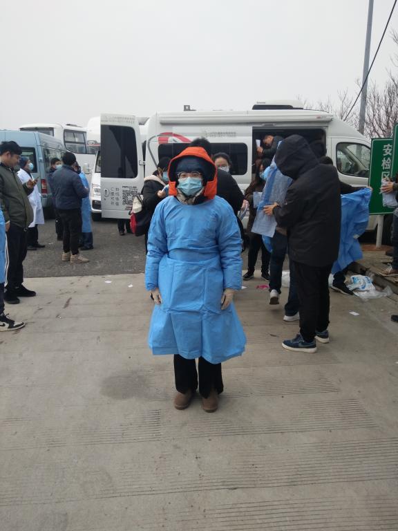 因为疫情的原因,作为一名公卫医师,赵忠花一开始就积极报名请战,随时待命。1月27日,上海市崇明区要求临时组建专业医疗队伍,在崇启道口进行逢车必检工作任务,下午绿华镇社区卫生服务中心发布通知派出了赵忠花去执行任务,当晚10点紧急告知要11点到岗工作。“快一点,时间来不及了”距离道口30几公里的赵忠花着急地说。在凛冽的寒风中,她用体温捂着冰冷的测温仪,确保测温仪正常使用,为能及时应对G40崇启检查站24小时3.5万人次的流量,她不敢喝水,不敢上厕所。她说:“比起在武汉一线的医务人员,我们已经很好了,如果下次还有这样的任务,我还是会第一时间报名!”下班后,赵忠花的双层衣服已经完全湿透,她和其他医务人员看着对方红鼻肿眼的样子相视一笑,心照不宣的伸出拳头说了一句“加油!”。