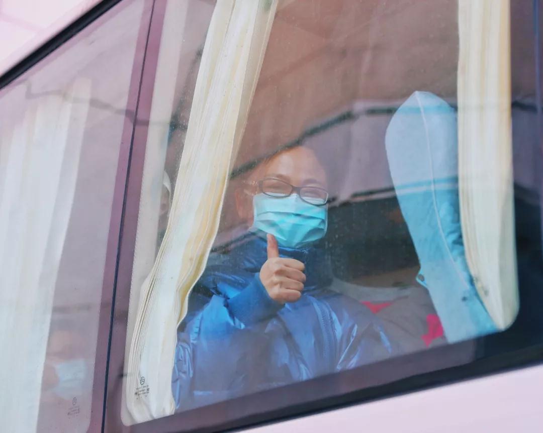 飞机落地时,随行的空姐突然跑过来和我说,可以和你们拍照吗?你们是最棒的。请你们注意保护好自己,等你们凯旋,我们再接你们回家,加油!那一刻,我们每个人都红了眼眶,在心底对自己大声的喊,加油!
