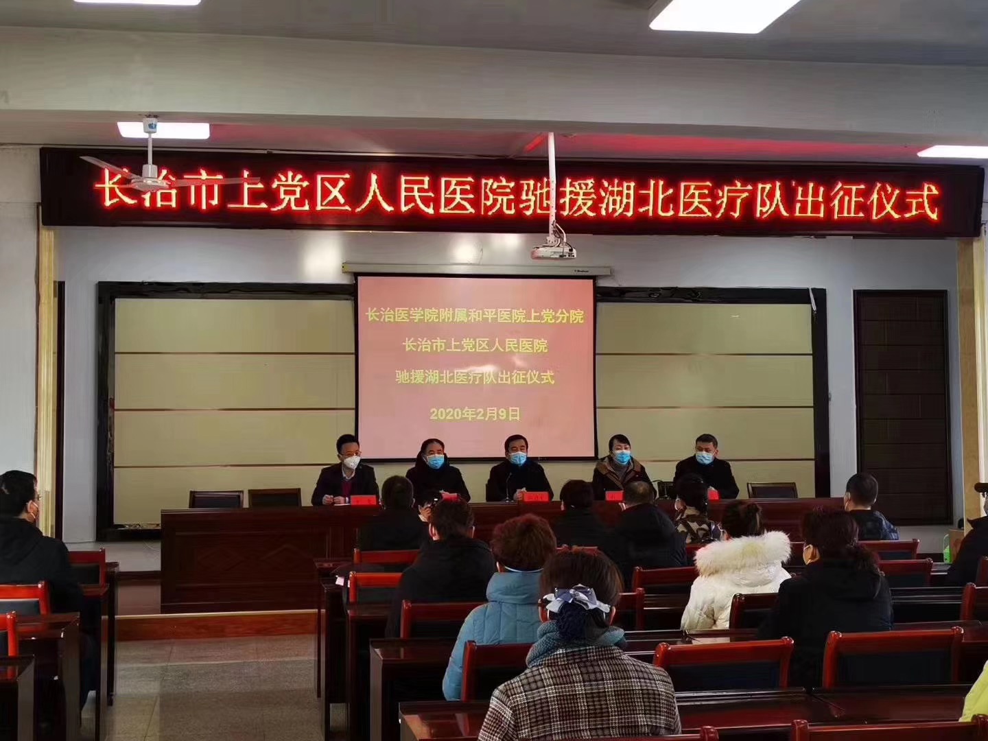 2月9日上午,我校附属和平医院上党分院两名医务人员赴鄂支援。医院举行了简短而庄重的出征仪式,长治医学院、附属和平医院、上党区政府、上党区卫体局相关人员前来送行,叮嘱两名医务人员做好个人防护,服从指挥,牢记使命,光荣完成各项工作。