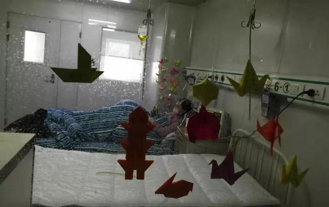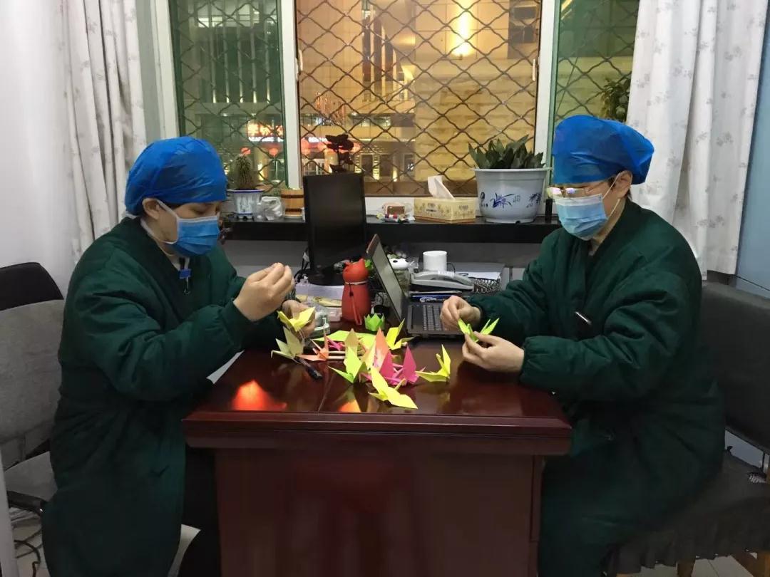 王蕊介绍说,隔离区疑似病人很多为外地人,而且单间隔离,对陌生环境不适应,对疾病的未知,难免会产生恐惧心理。为了防止病毒感染,医护人员在与患者交流时,都穿着厚厚的防护服,带着护目镜,人与人之间的信任和交流不易建立。用爱心折的彩色千纸鹤,用耐心写下的祝福话语,一只只,一串串,构成了医患之间情感关系的桥梁。