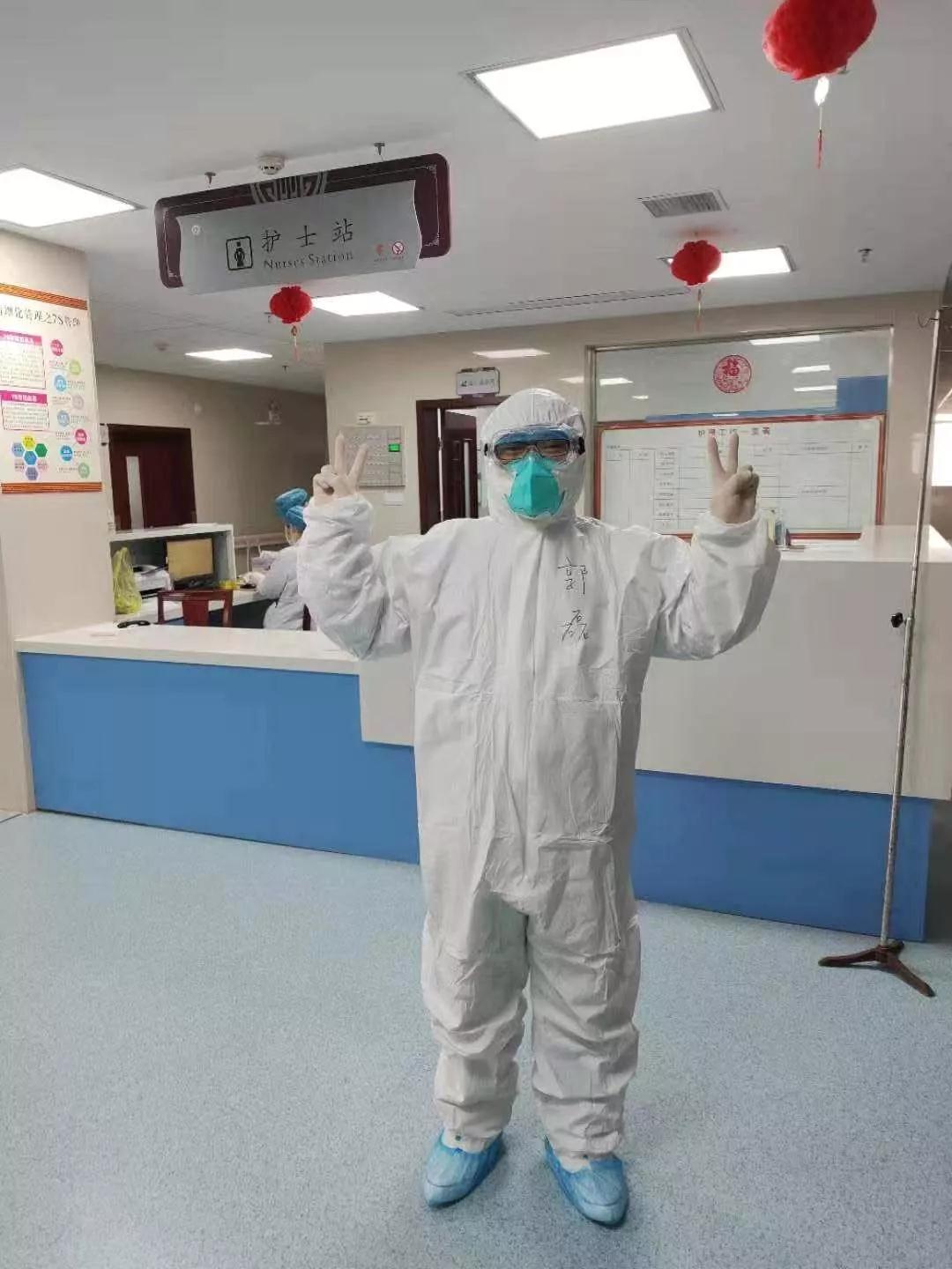 武汉的冬天,很冷,但郭磊每天出汗到几乎脱水。从早晨穿上完全不透气的防护服进入隔离区,他至少要坚持4个小时,中间不喝一口水,也没有时间上厕所。“投入工作前,医护人员一般都不敢吃喝太多,穿成人纸尿裤,也是一种心理慰藉,一切都只为了确保自己不因自身因素耽误工作。”郭磊说。根据当地的医疗救助需要,2月1日郭磊一组又被调往天门市中医院,并直接接管部分因新型冠状病毒感染的肺炎患者。“好好配合治疗,注意休息,很快就会好起来的。”每天清晨查房,郭磊的话犹如一剂强心针,让隔离治疗的患者心中燃起治愈出院的希望。“医生的话,我信!全国这么多专家来这儿帮我们治疗,武汉一定会好起来!”患者的话,让郭磊防护镜下双眼尽湿。