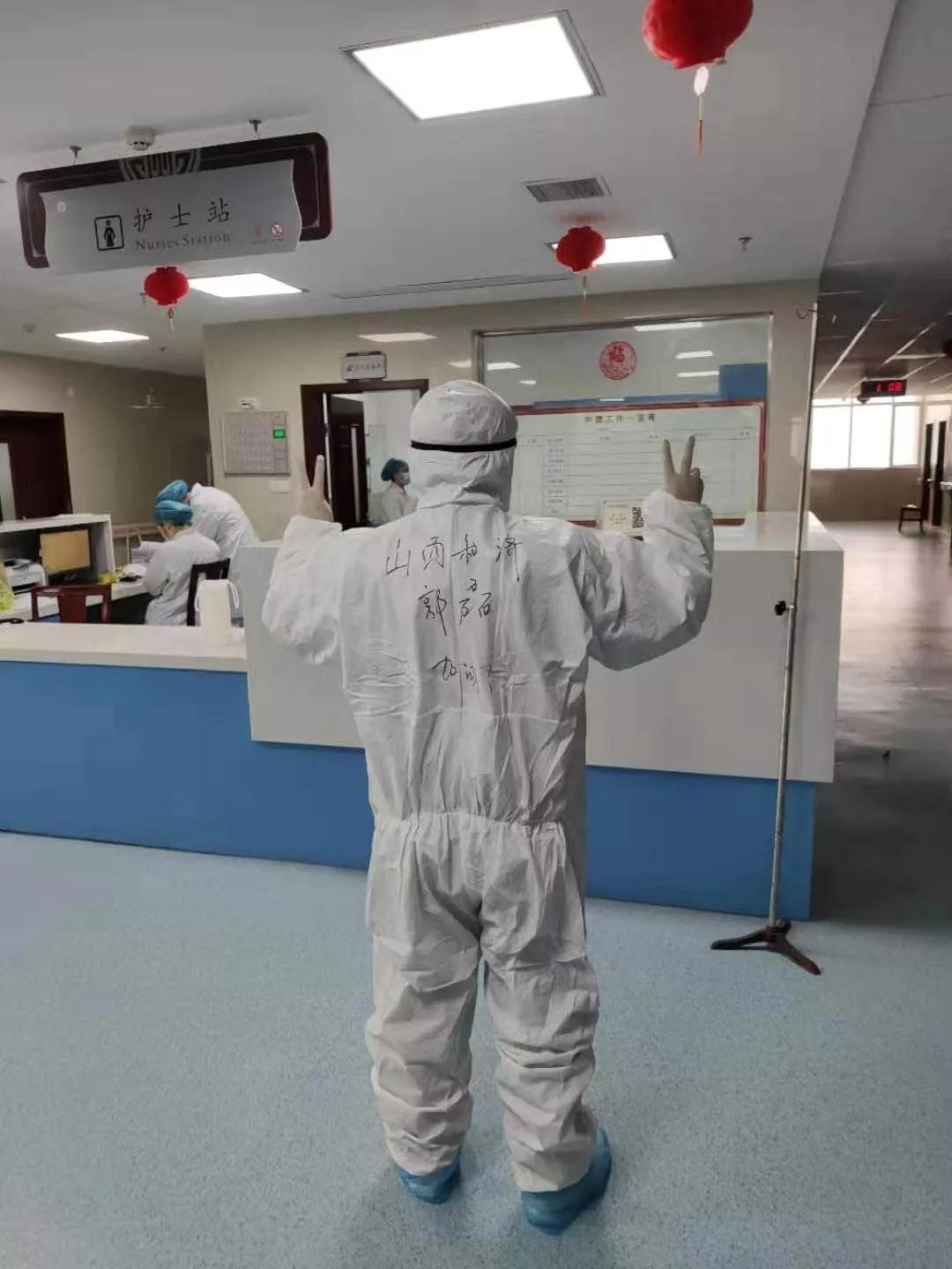 我不知道你是谁,我却知道你为了谁。密不透风的防护装备下,医护人员需要在身后写上名字才能知道对方是谁。虽然以前未曾谋面,他们却在抗疫一线结成了最亲密的战友。郭磊说:“疫情从武汉到全国,支援从全国各地汇集到武汉,我们从来都不是一个人在战斗,全国各地专家汇集于此,火神山、雷神山医院迅速建设,党旗一直飘扬在抗疫一线,这些都让我坚信,此役必胜!”